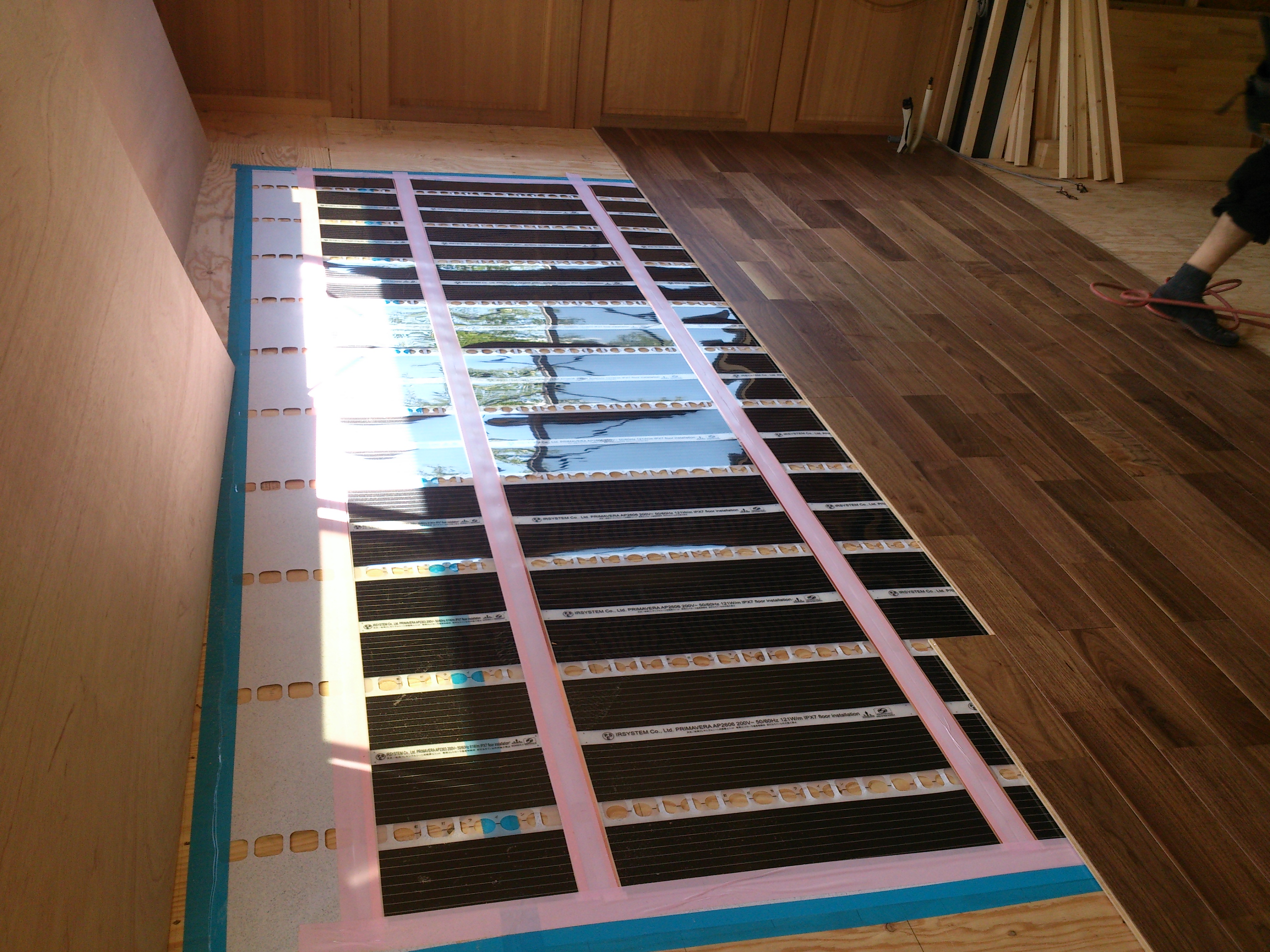 お客様との打合せスペースにはシート式の床暖房を使用。