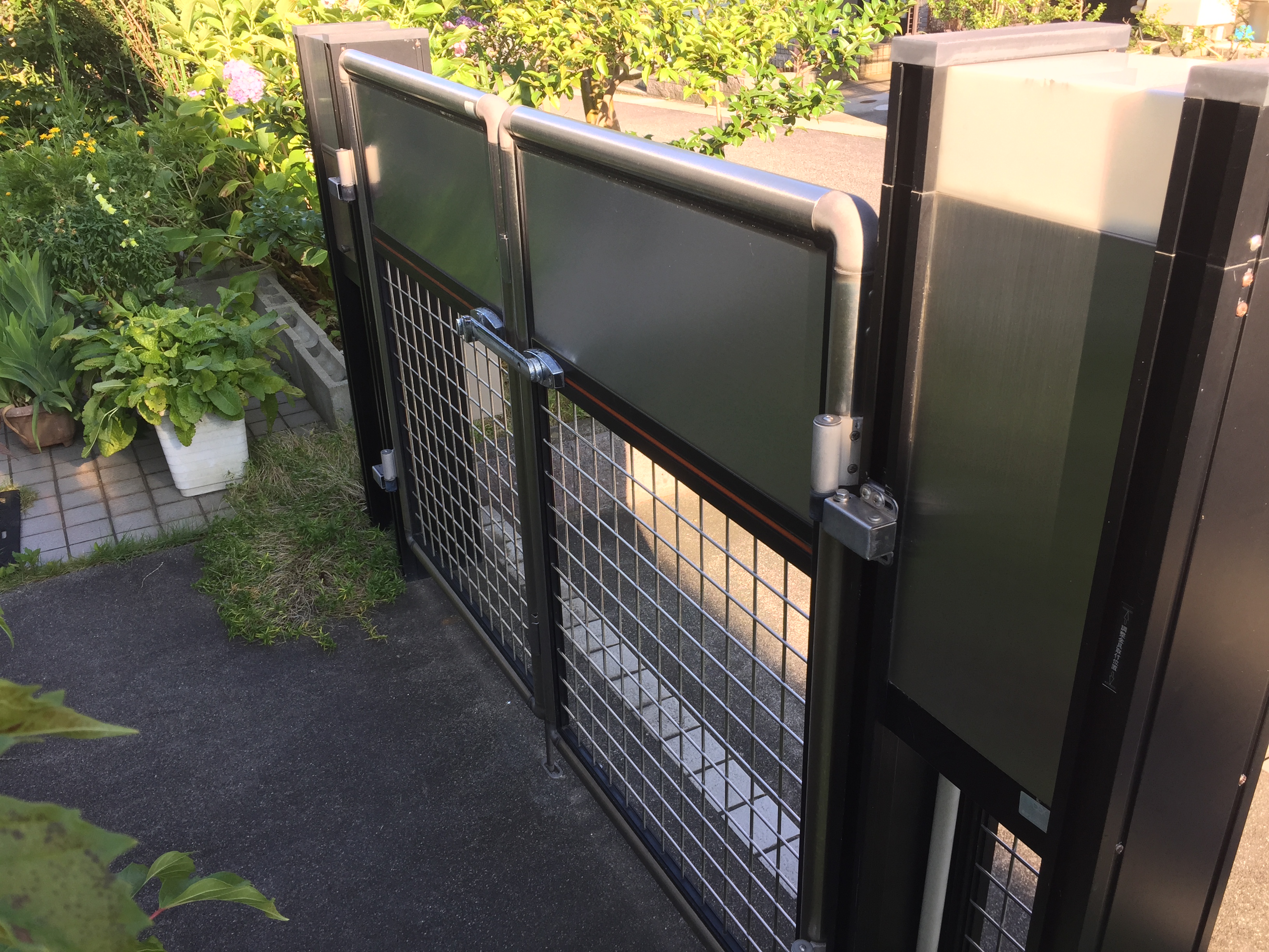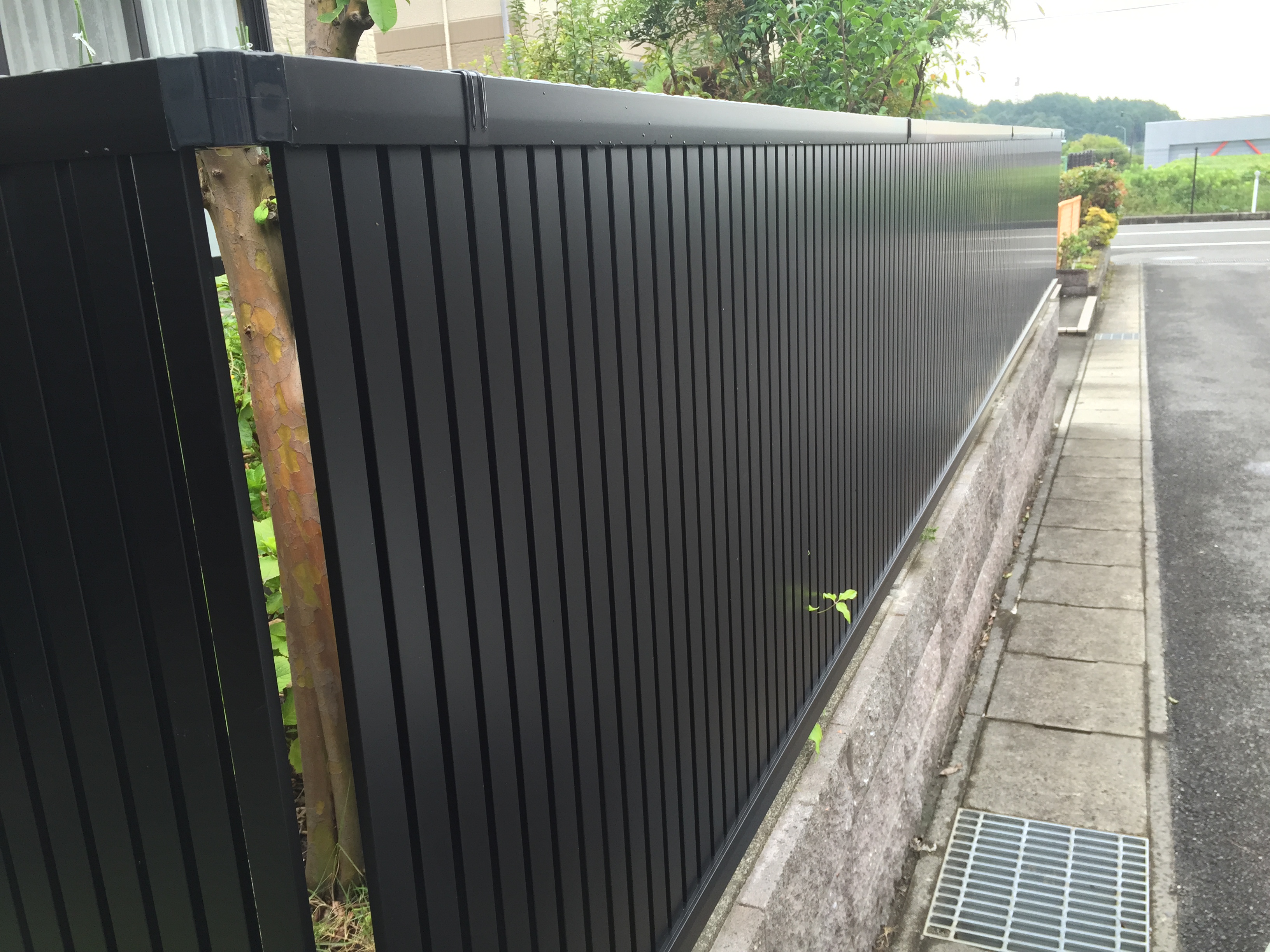 植栽を撤去して、フェンスを取り付けました。 ブラックカラーがシックな印象です。