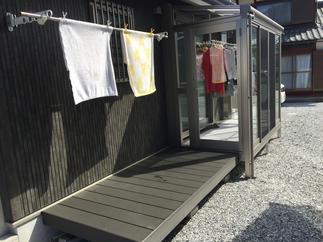 中で干したい時はサンルームで、外で干したい時も、もともとのウッドデッキが役立ちます!