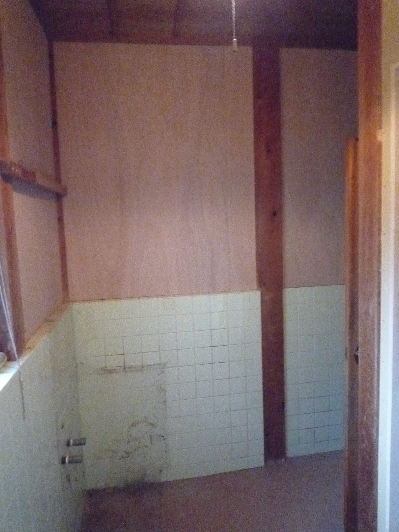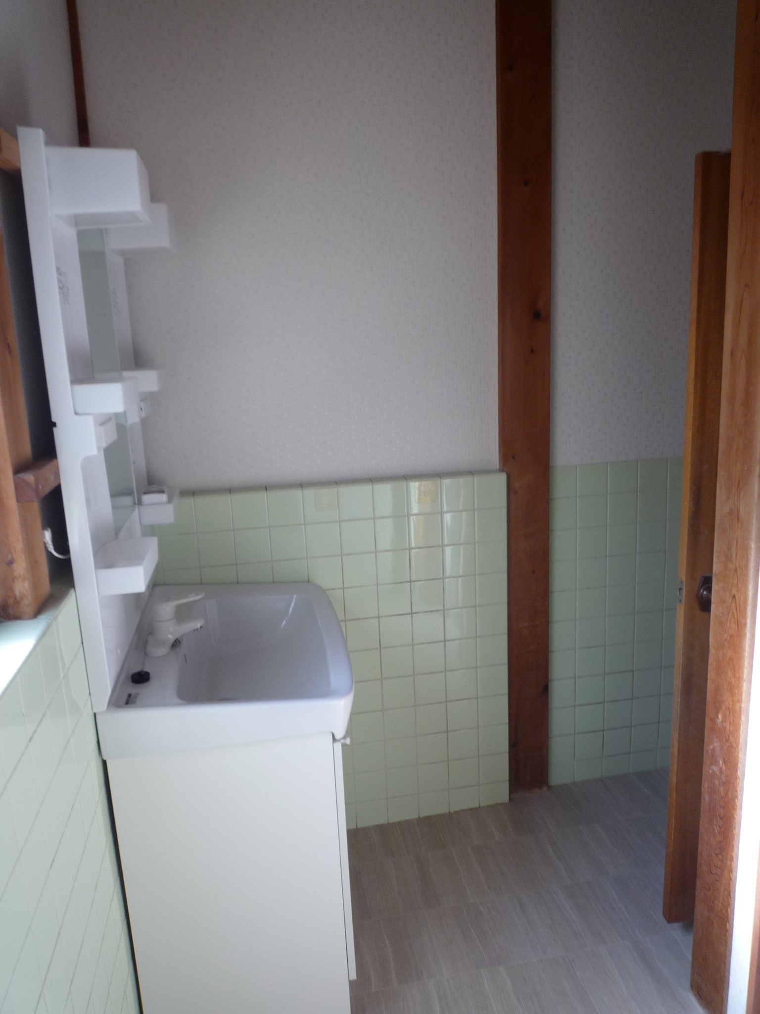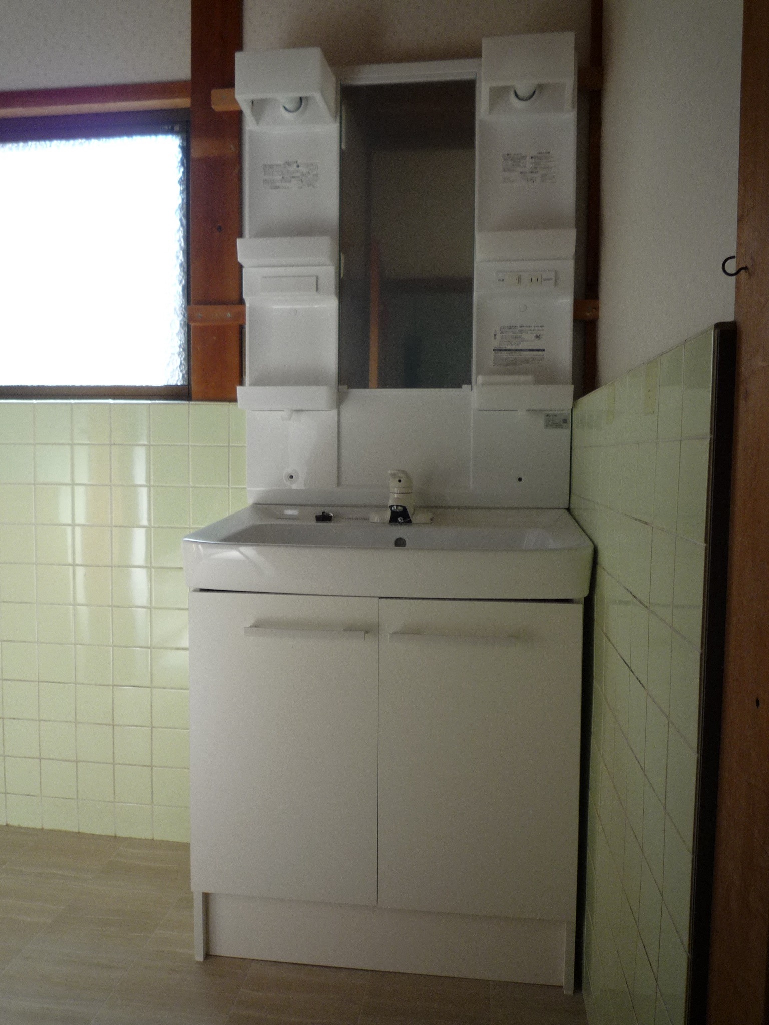 洗面室の既存タイルは残し、壁にベニヤを上張りしました。