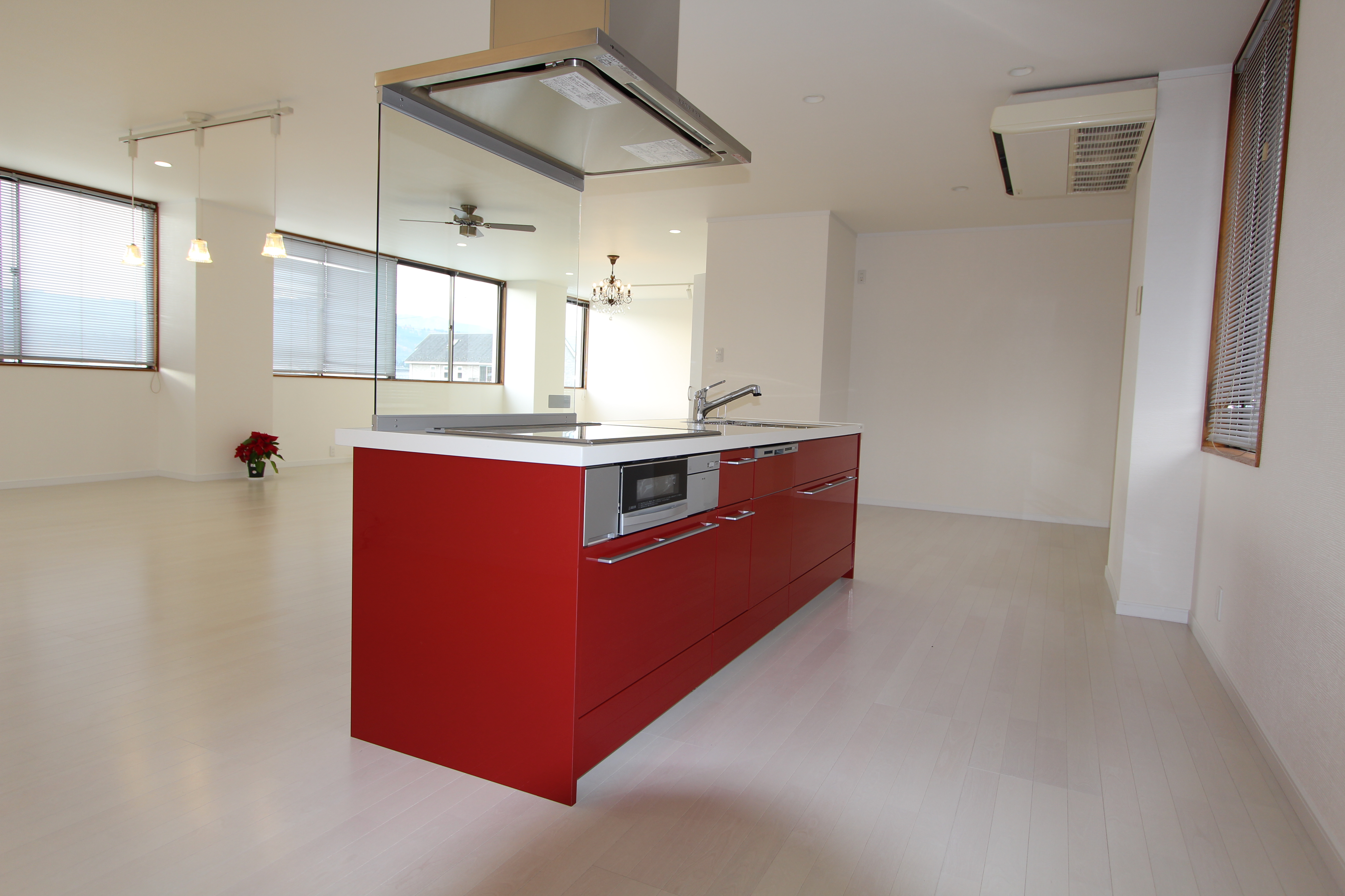 広いリビングダイニングを見渡せるアイランドキッチンです。 料理しながらでも、ご家族の様子がよく分かります。