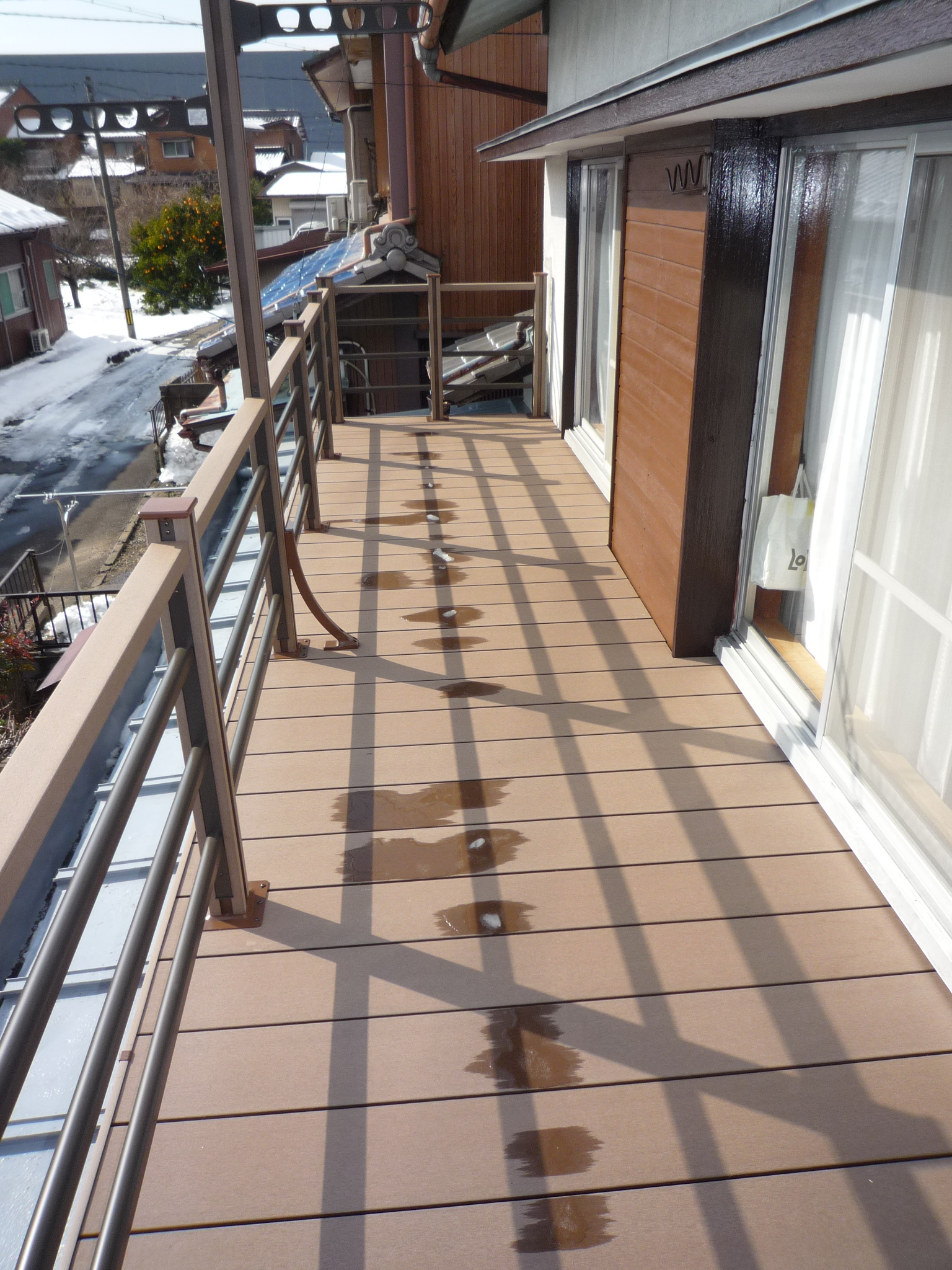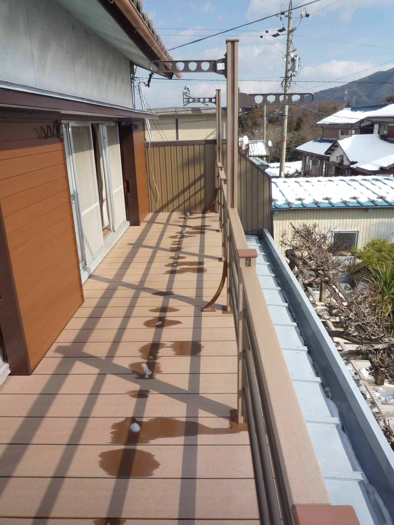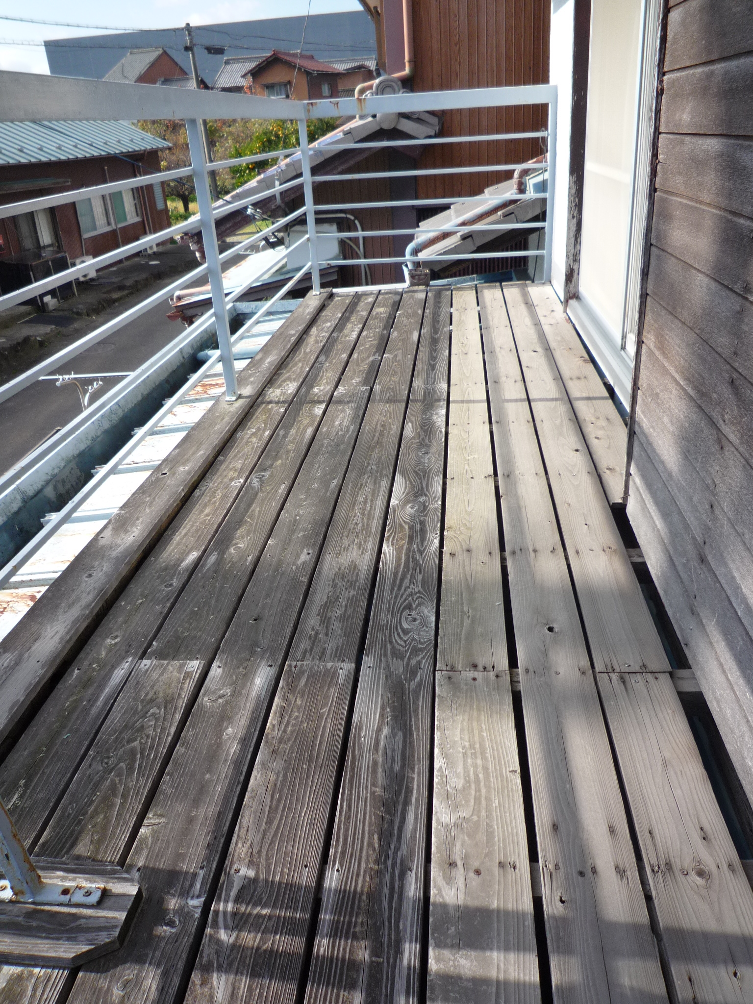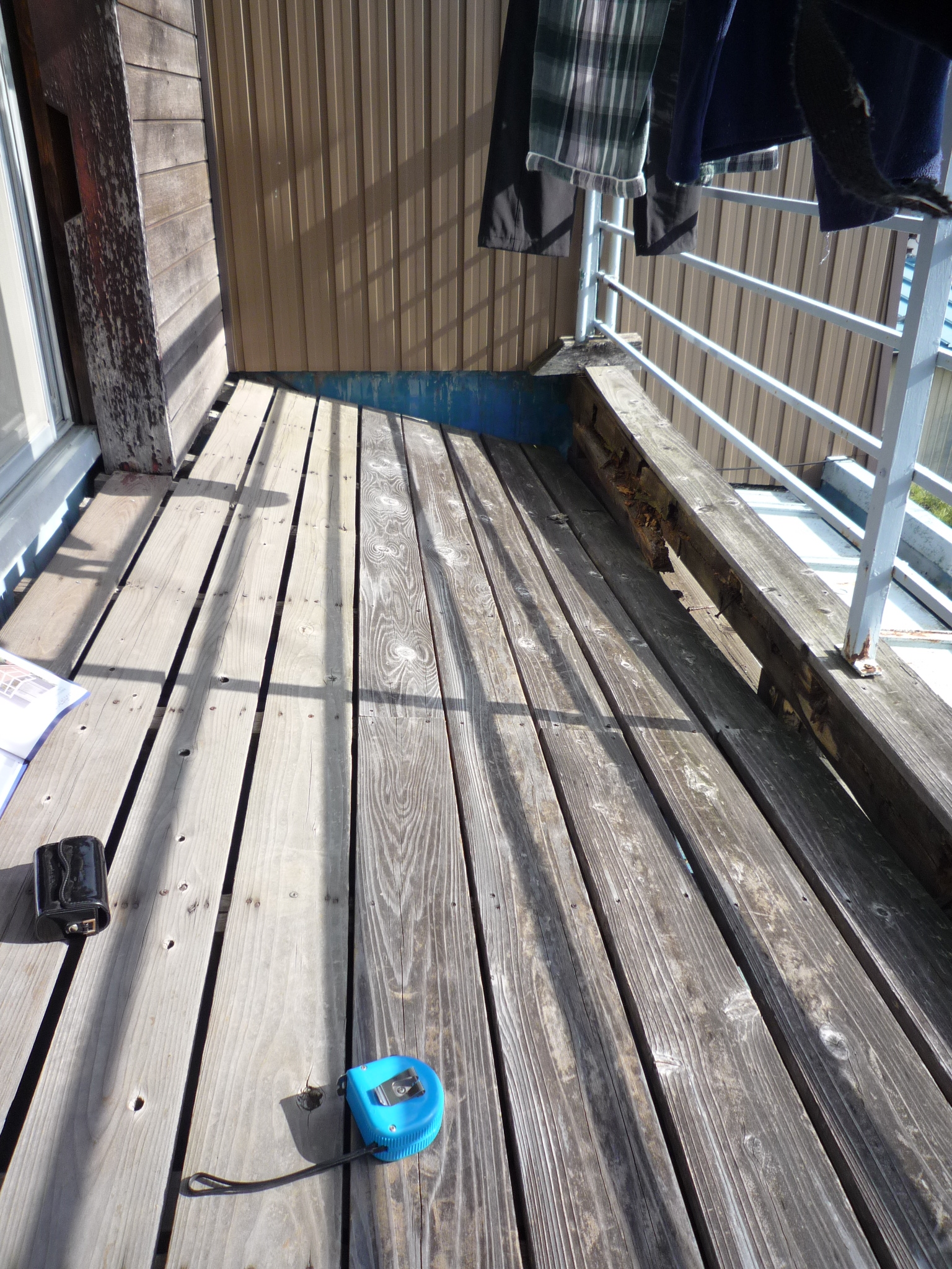 以前のバルコニーは、老朽化により床板が傾き、洗濯物を干す際に足元が危ない状態でした。