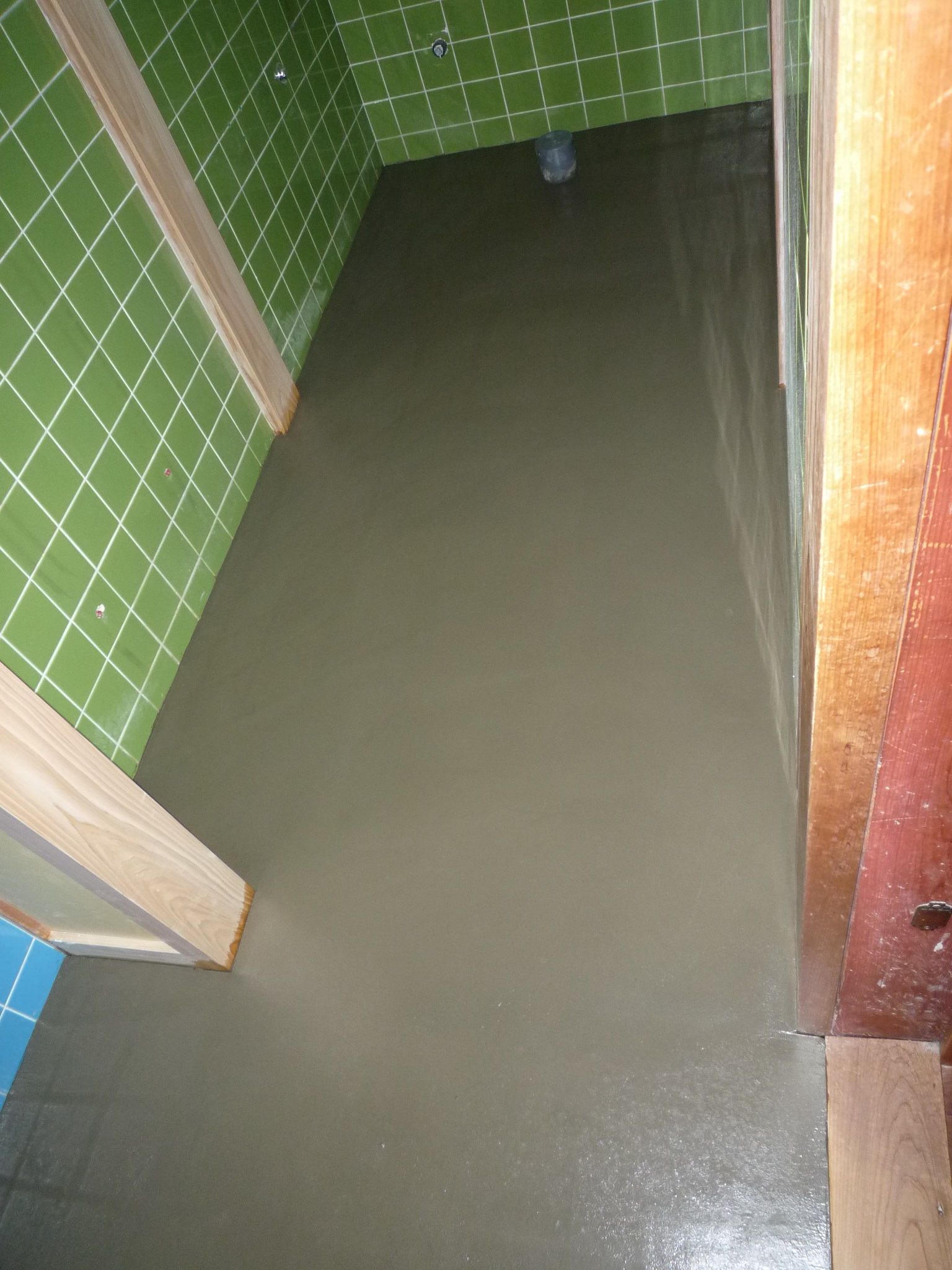 新らしく配管をして、今までの配管とタイルの床はコンクリートで埋めました。