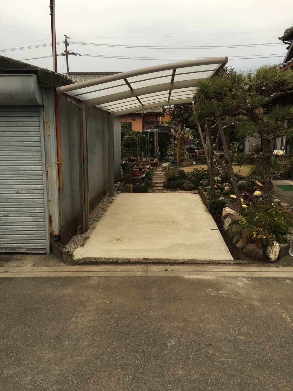 車庫に隣接した駐車スペースに、よく出入りする車を置いていましたが、雪が降るとさっと出られないのがお困りでした。 これで雪の日も、車の出入りがスムーズにできますね。 このような狭いスペースでも対応可能なカーポートです。