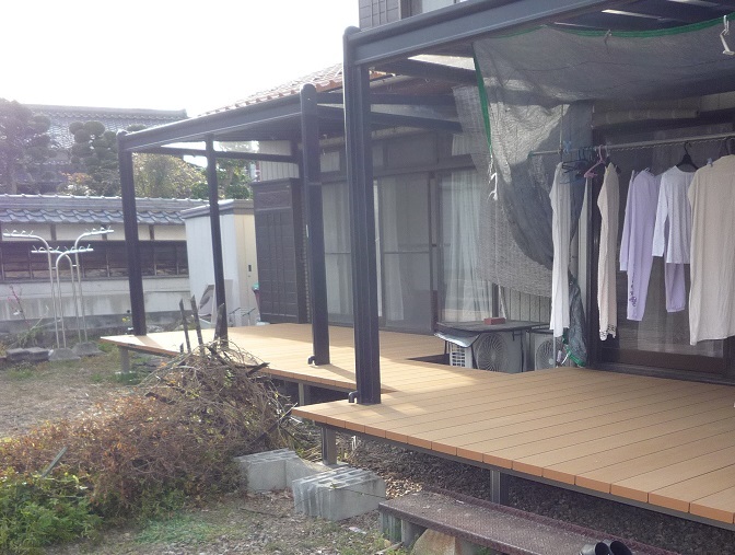 新しいウッドデッキは、見た目は木なので、暖かみを感じることが出来ます。 腐りにくい材質で出来ているのが嬉しいですね。