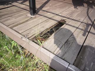 以前のウッドデッキは、積雪により湿気を吸い、腐ってしまっている状態でした。