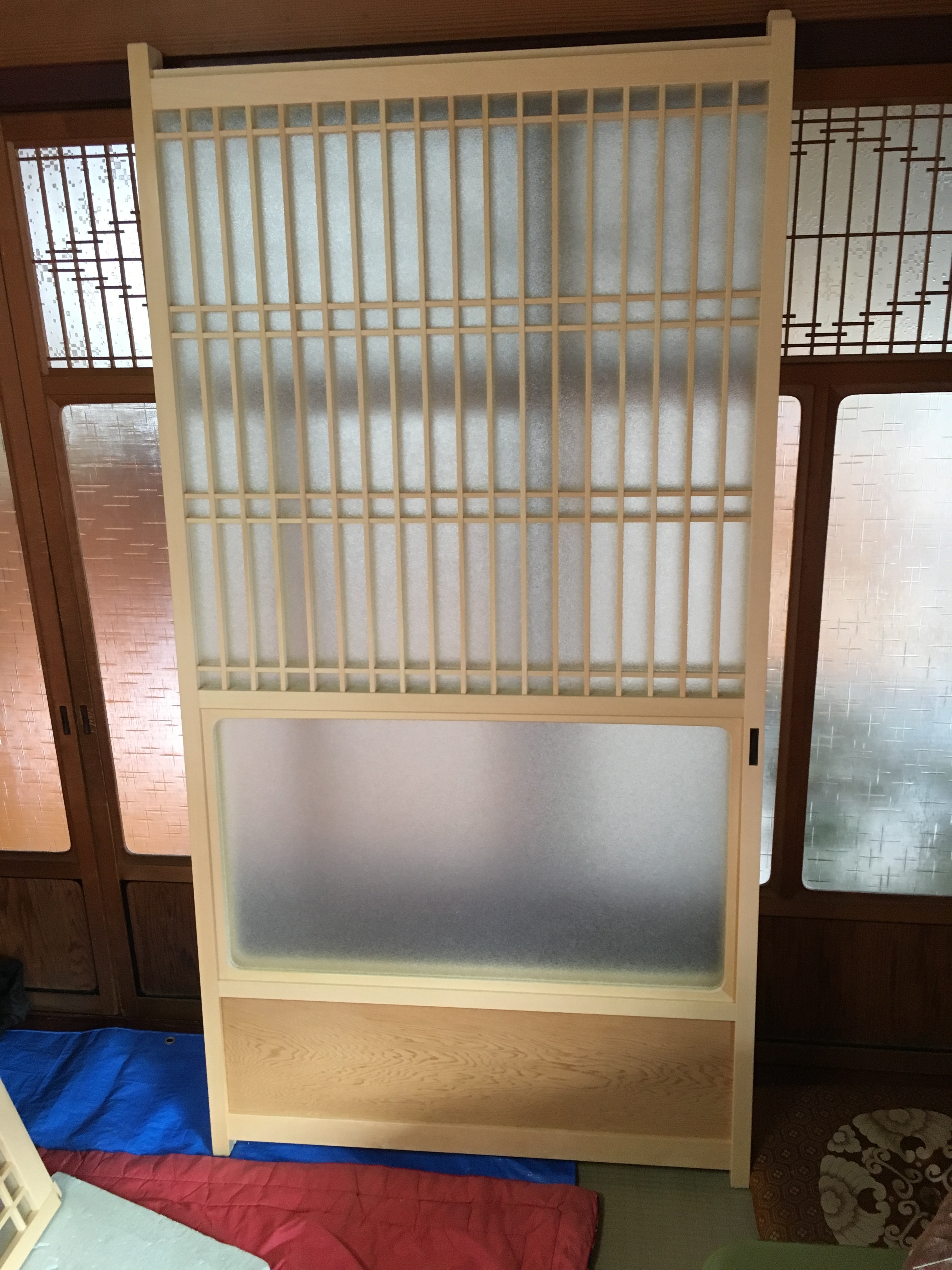 ご家族がよく過ごす居間の建具だったので、まだ小さいお孫さんが何度か硝子を割ってしまい、建具自体の動きも悪いのがお悩みでした。 今回、硝子ではなく割れにくいアクリル素材を使用しました。 白木の建具はこれから少しずつ焼けて、自然の濃さになっていきます。 建具を入れ替えただけで部屋全体が明るくなった!と喜んで頂きました。