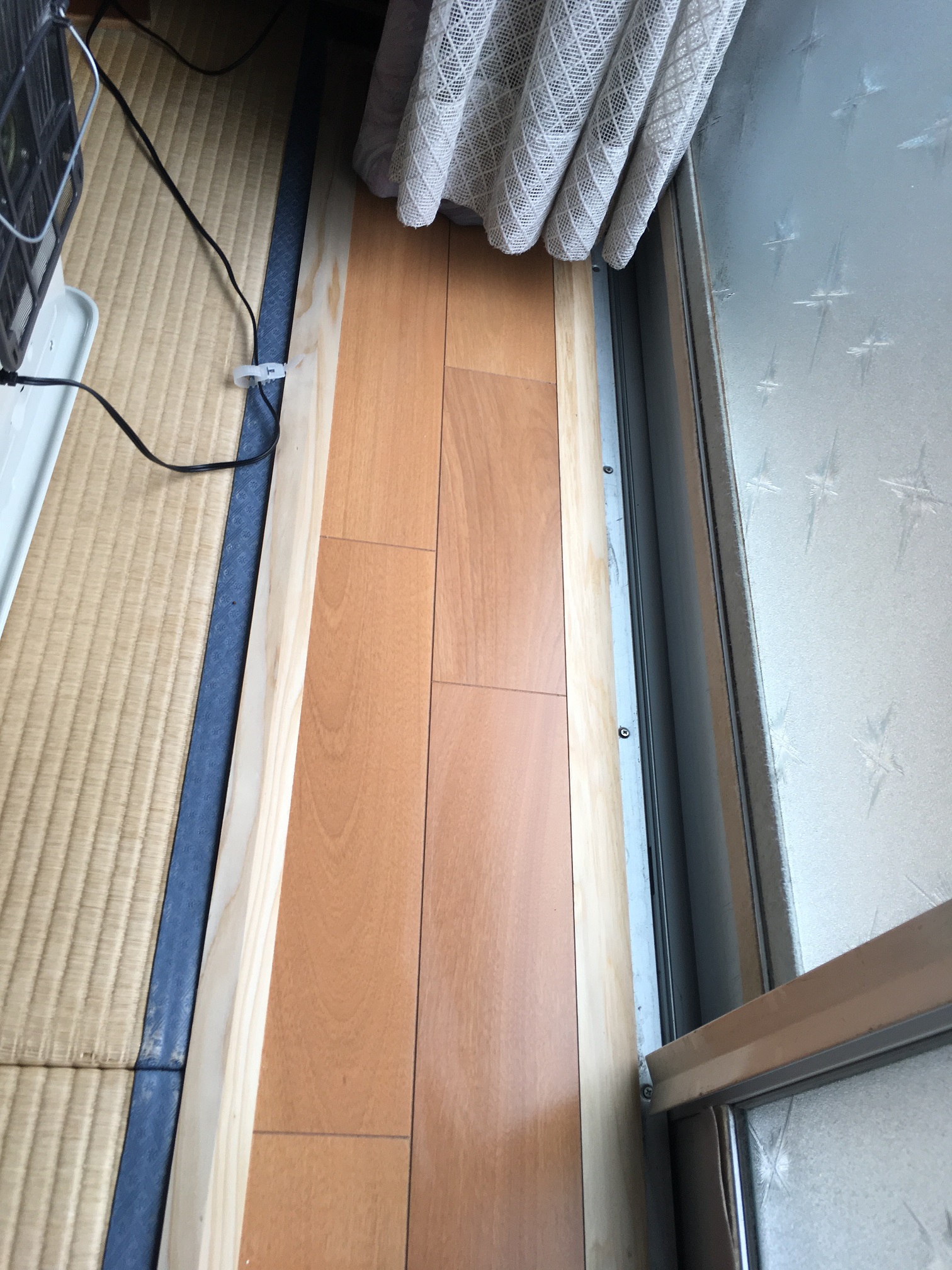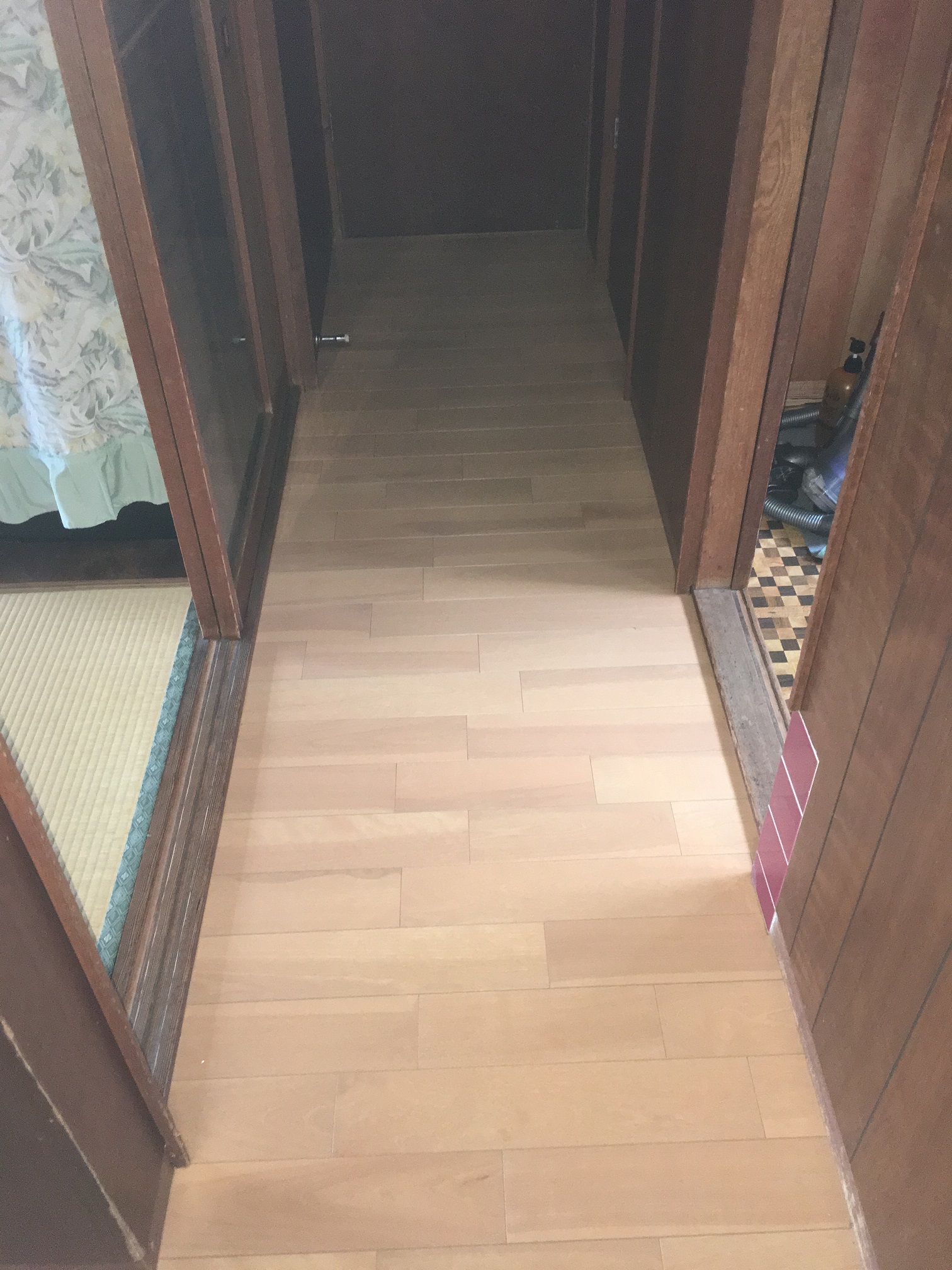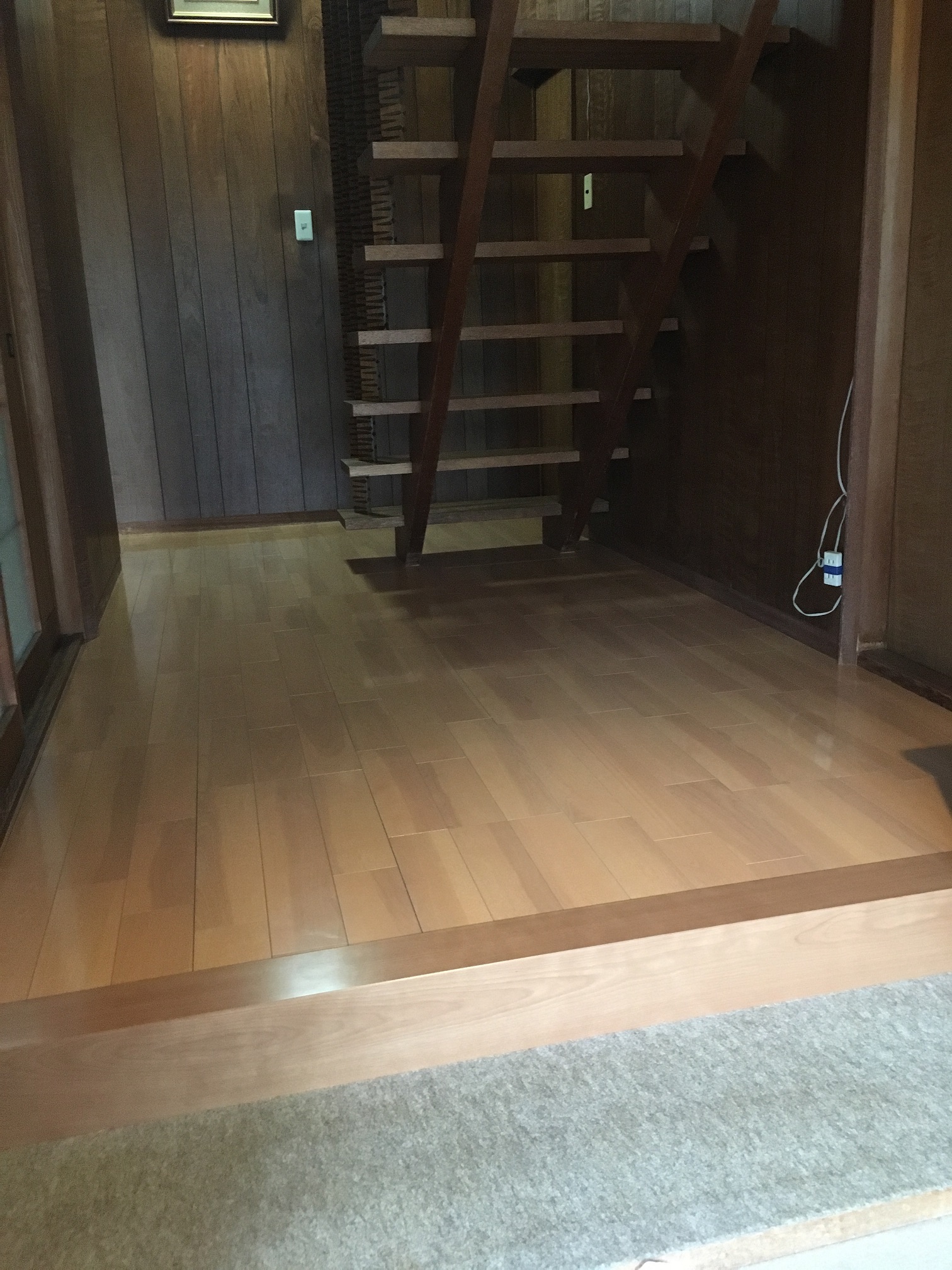 以前と比べて、床がぐんと明るくなりました。 また、上貼りしたことにより、敷居との段差が少なくなりました。