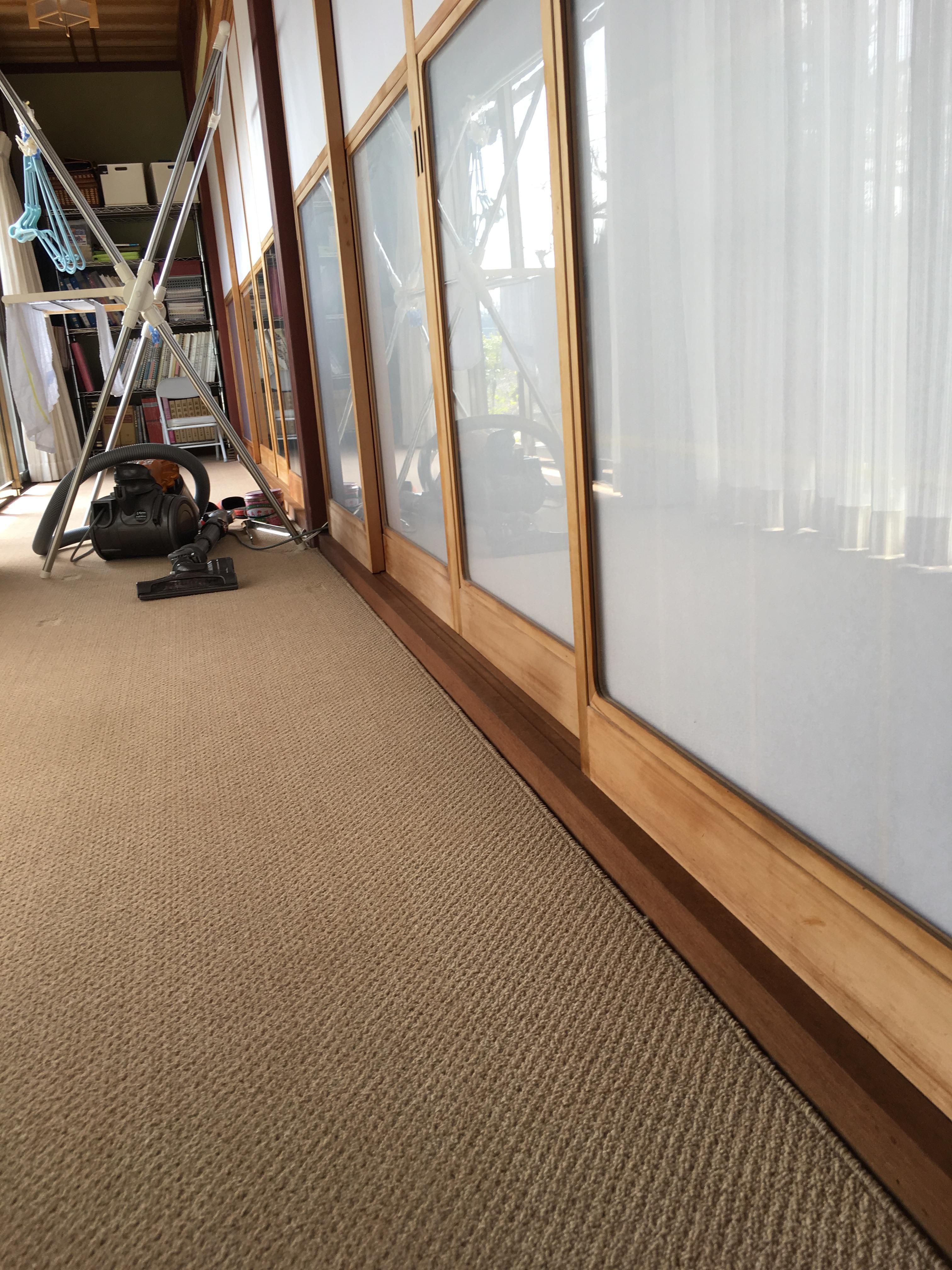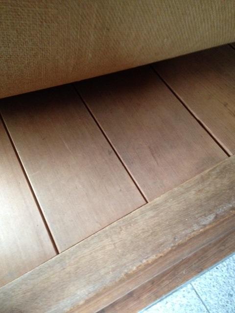 もともと、米松の縁床が張ってあり、その上にカーペットを敷いていました。今回、カーペットが傷み、縁床も毛羽立ちが気になるということで、張替えのご依頼を頂きました。