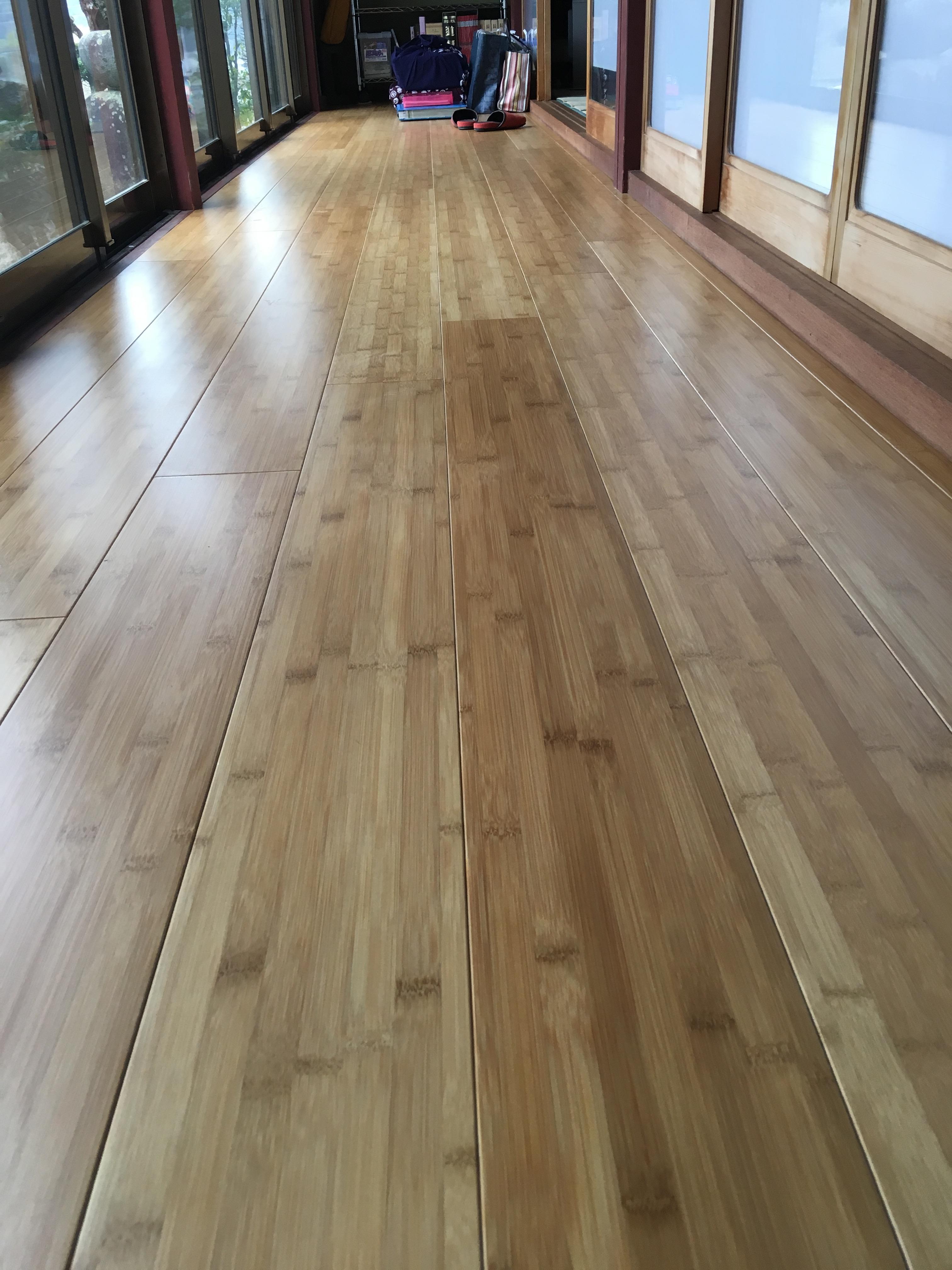 お客様がご希望のイメージは「銭湯の脱衣場の床のようにしたい!」ということで、「バンブーフロアー」という竹調のフロアーをご採用頂きました。