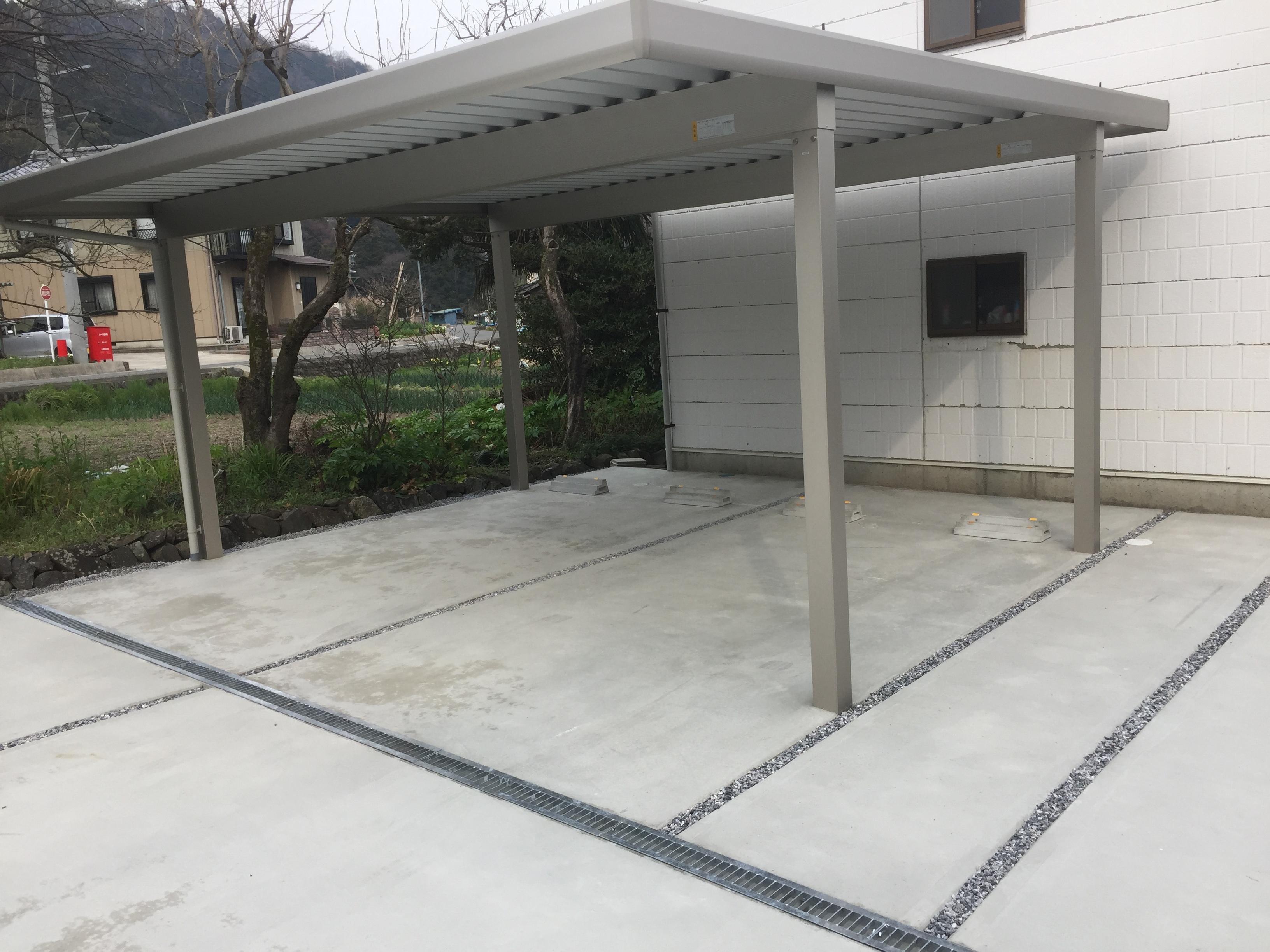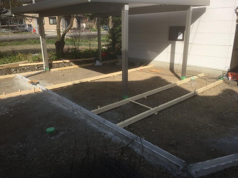 まずは、もともと設置してあったカーポート周りを整地し、新たに土間コンクリートを打ちました。