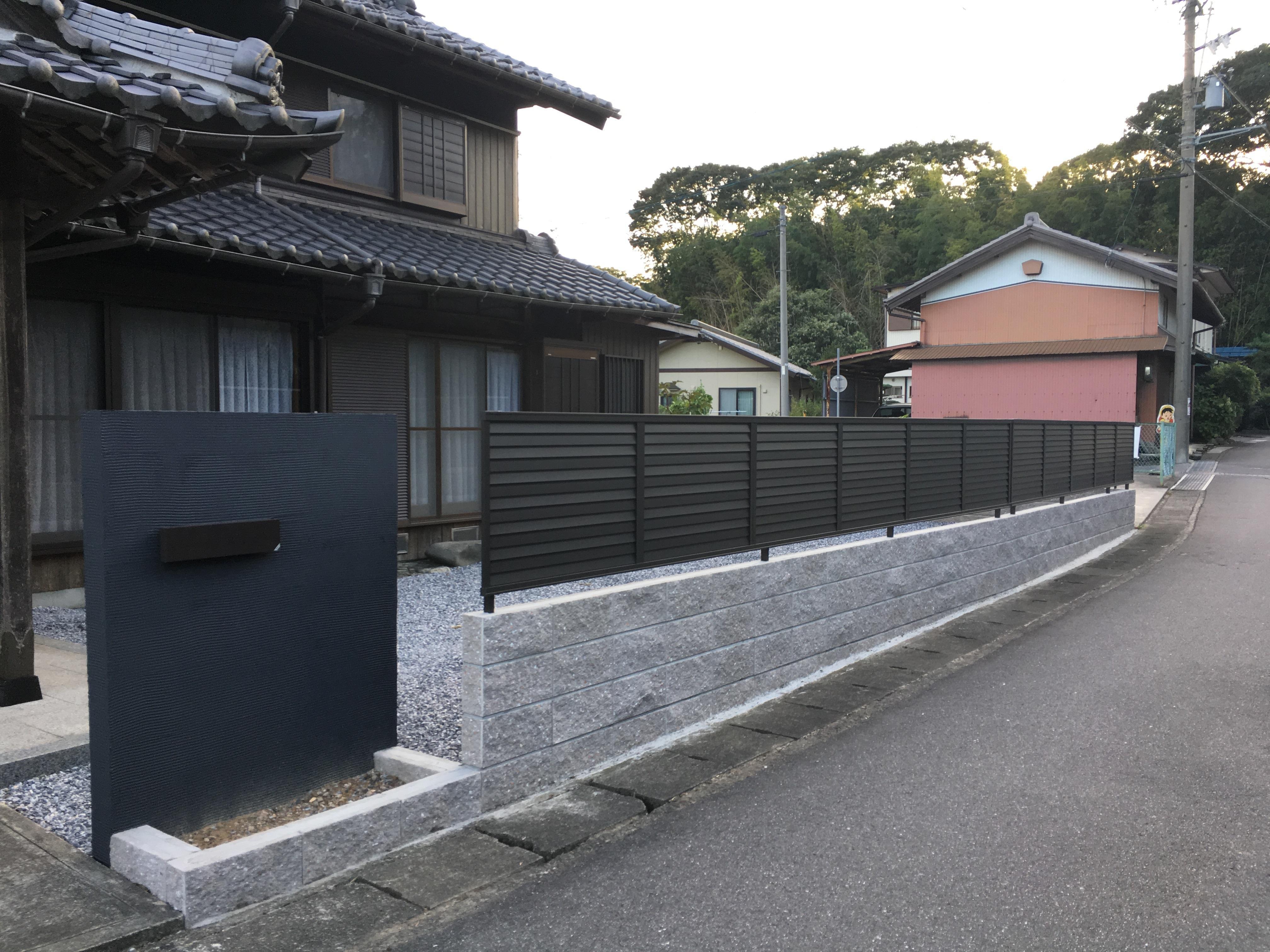 境界には目隠しも兼ねて、フェンスを建てました(LIXILプレスタフェンス8型)。和風のお家にもお似合いの重厚感あふれる仕上がりになりました。ポストの前には少し花壇を作りました。今後、新しいお庭作りが楽しみですね。