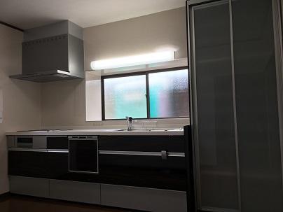以前はL型のキッチンでしたが、今回はレイアウトをガラリと変え、I型のキッチンを設置しました。食器棚もキッチンと並べて設置したので、スッキリとした空間に変わりました。