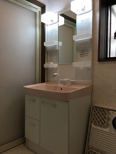 洗面化粧台も新しいものに入れ替えました。白とピンクの色の組み合わせが可愛らしい印象です。