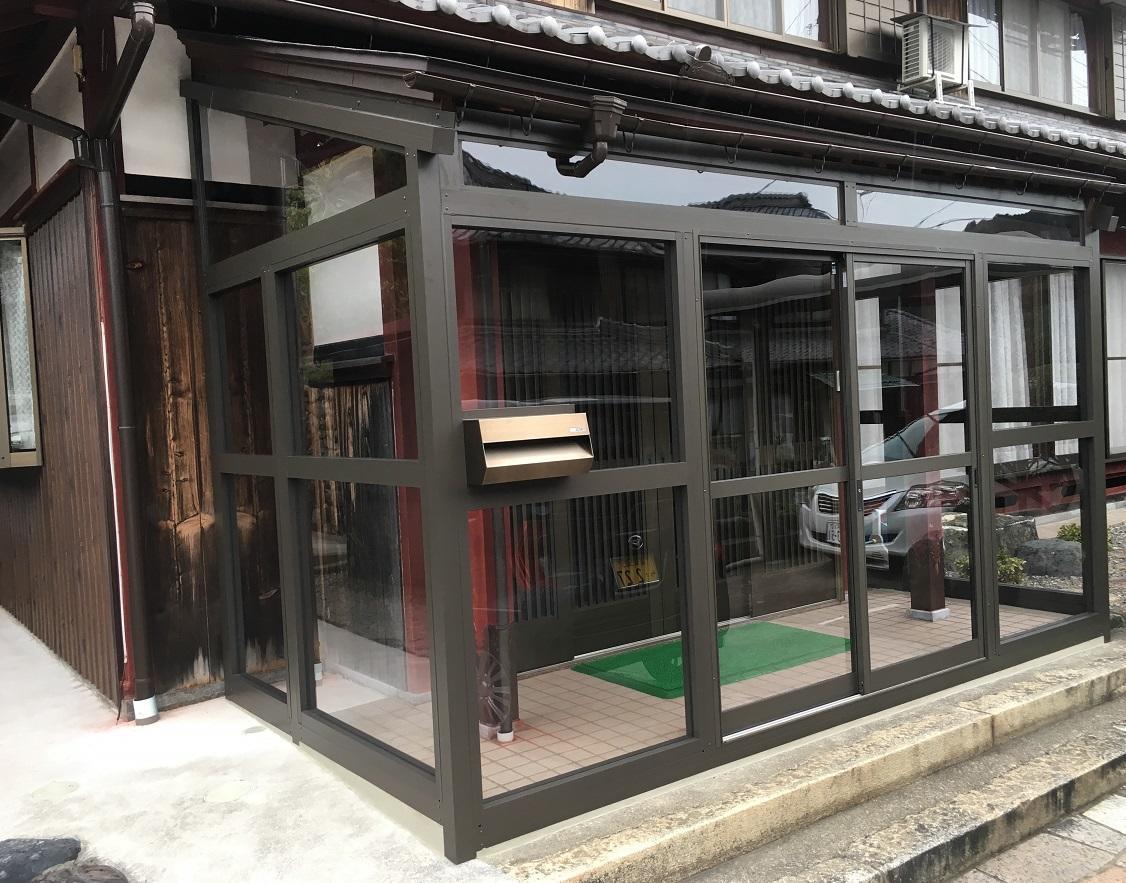 冬場の雪の吹込みが激しく、玄関を開けると雪が入ってきて床がベタベタになってしまうことが、長年のお悩みでした。今の玄関の庇を利用して、風除室をオーダーで作らせて頂きました。玄関脇に設置してあったポストはまだ新しいので、そのまま利用できるよう工夫をしました。