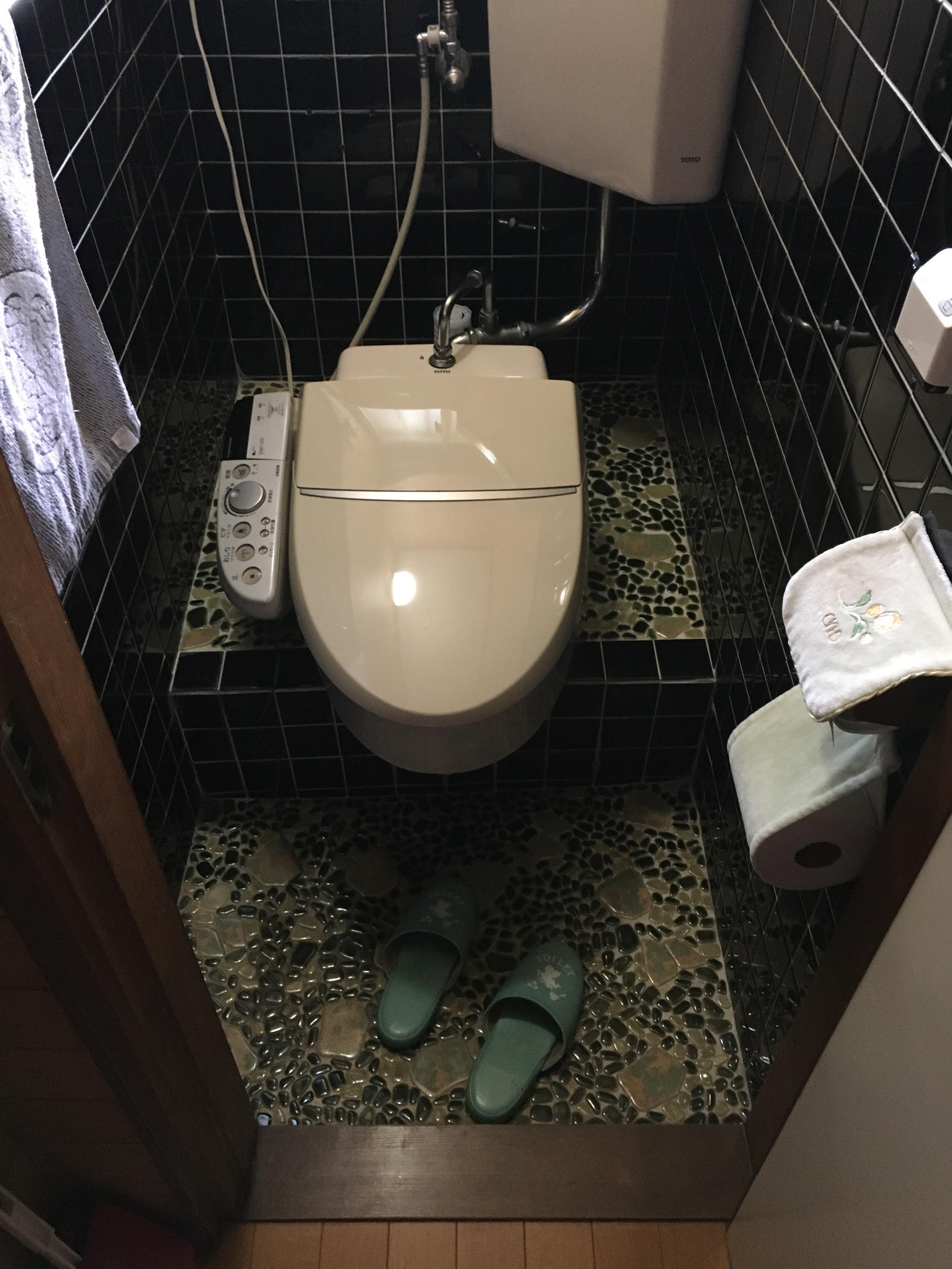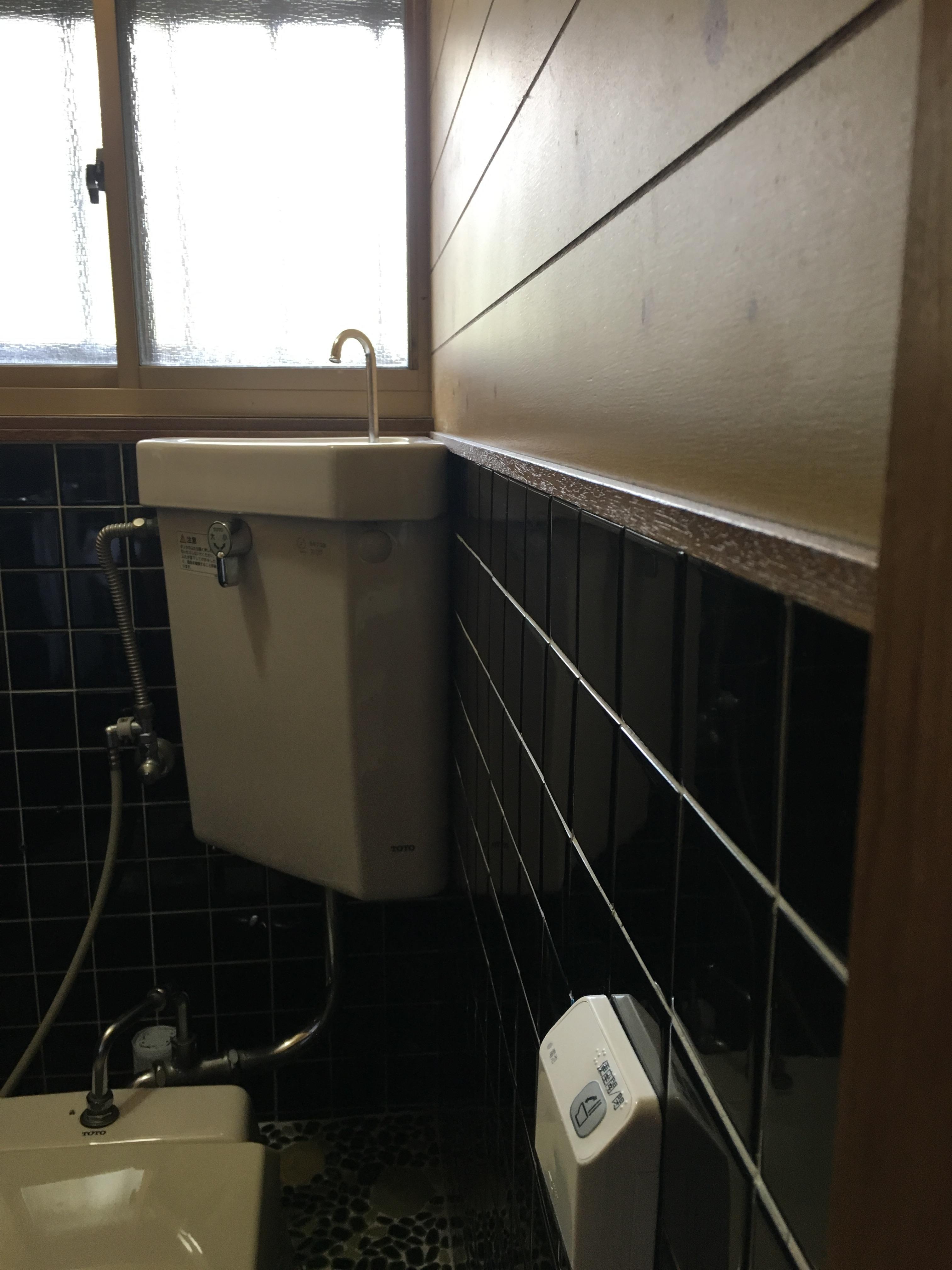 腰から上の板張りを残し、タイル部分の壁と床を直しました。床の段差はなくなり、手洗い器も別にしたので、これまでより使いやすいトイレ空間になりました。