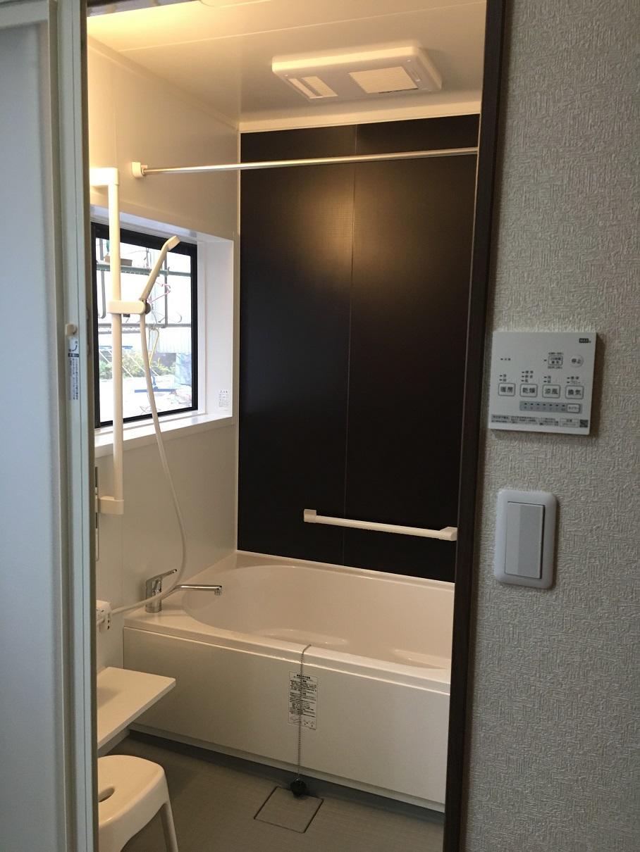 浴室自体の寒さと浴槽のまたぎにくさにお悩みだったN様邸。もともとのステンレスの浴槽のまたぎは、約65センチ程ありました。またぎが高いと、洗い場や浴槽内ですべる可能性があり、大変危険です。今のユニットバスは、またぎが45センチと安心の高さです。入口は、3枚引戸で広い開口を確保し、各所に手すりを取り付けました。