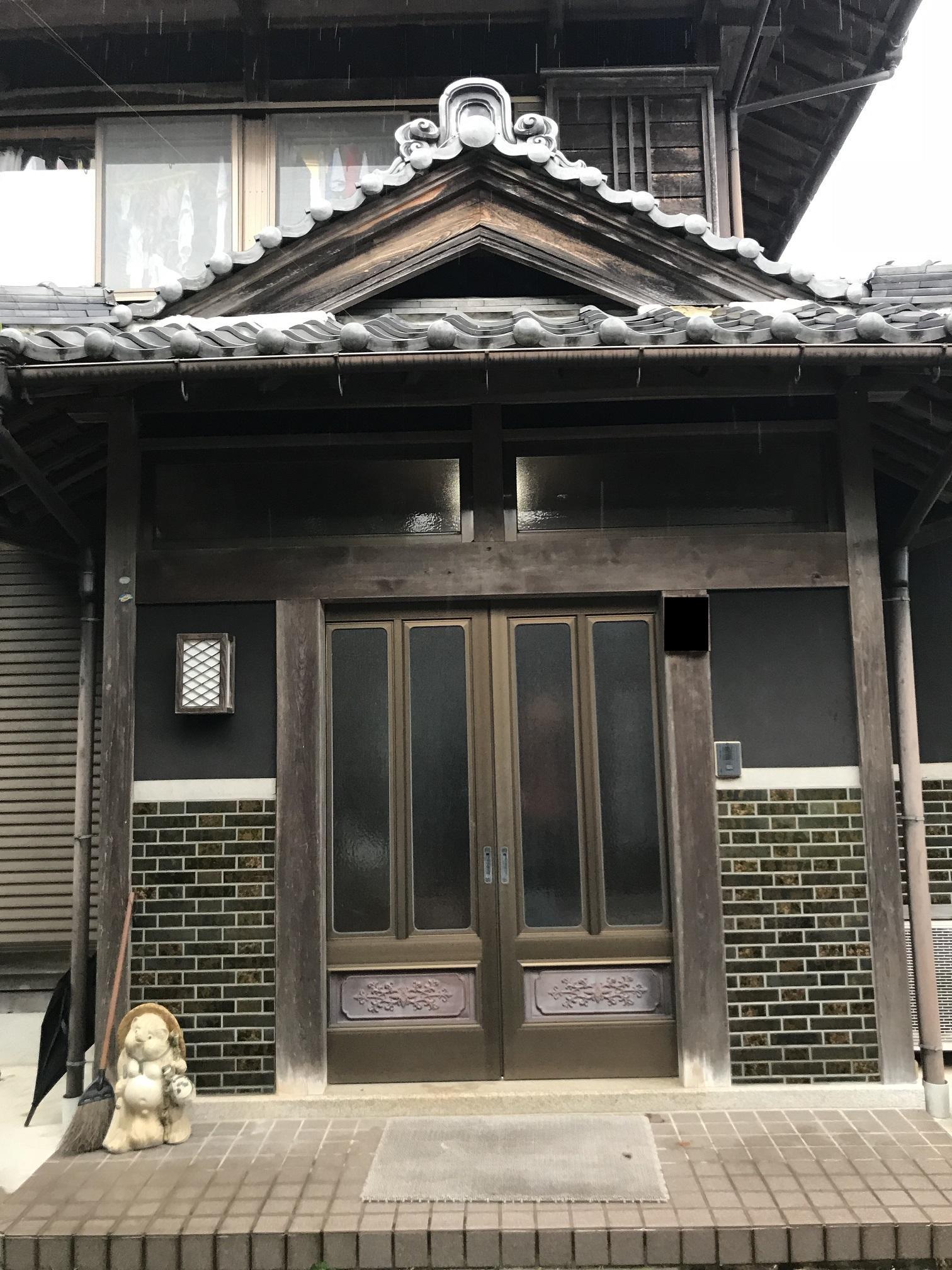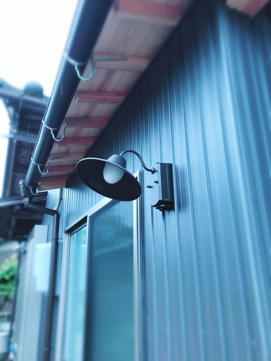 よく出入りされる勝手口だからこそ、こだわりを。照明器具のデザインが、シックな色目の外壁によく似合います。
