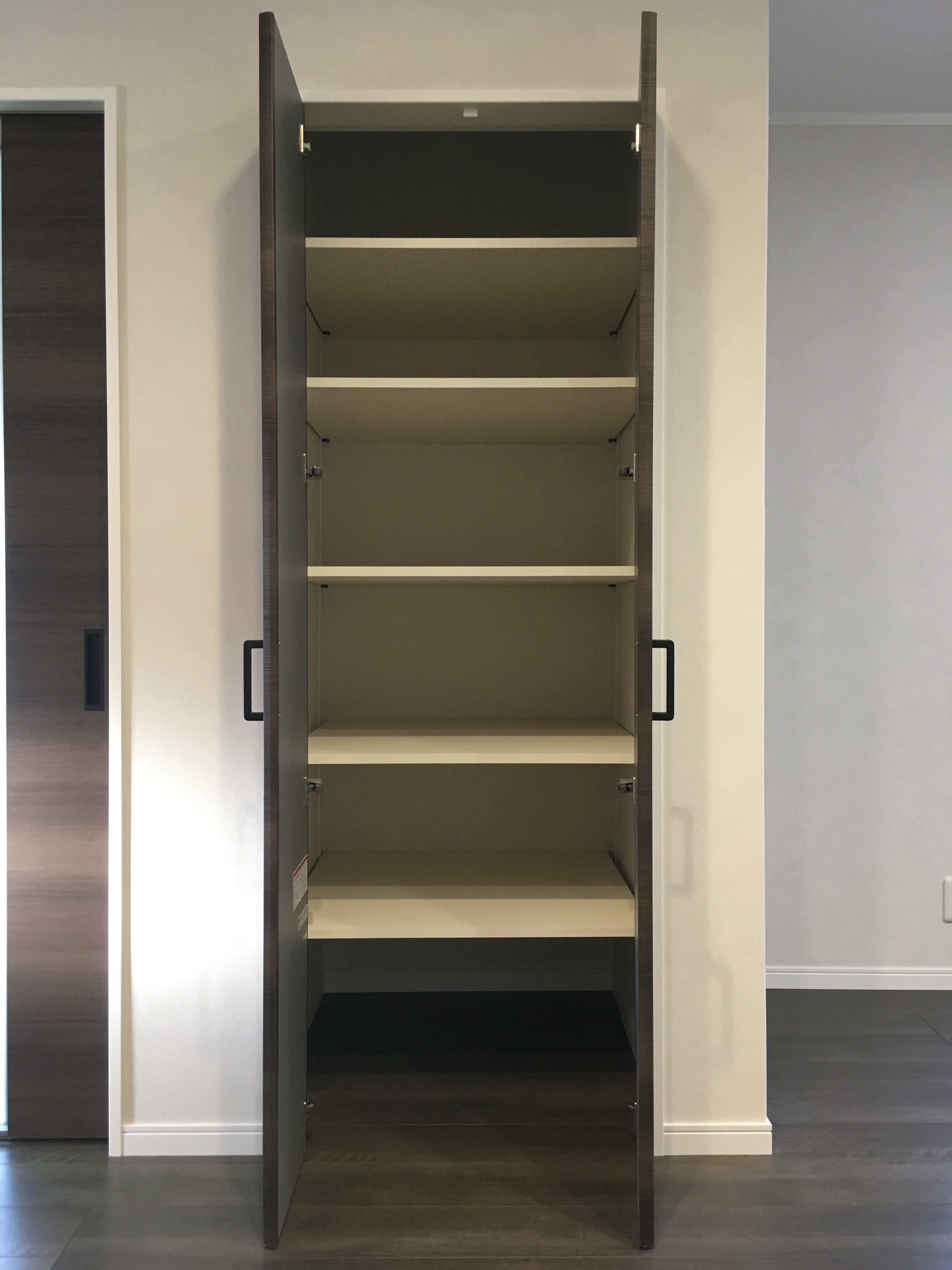 リビングの細々したものを仕舞っておける「リビング収納」は、棚の位置を変えられるので、仕舞うものによって自分でカスタマイズできます。