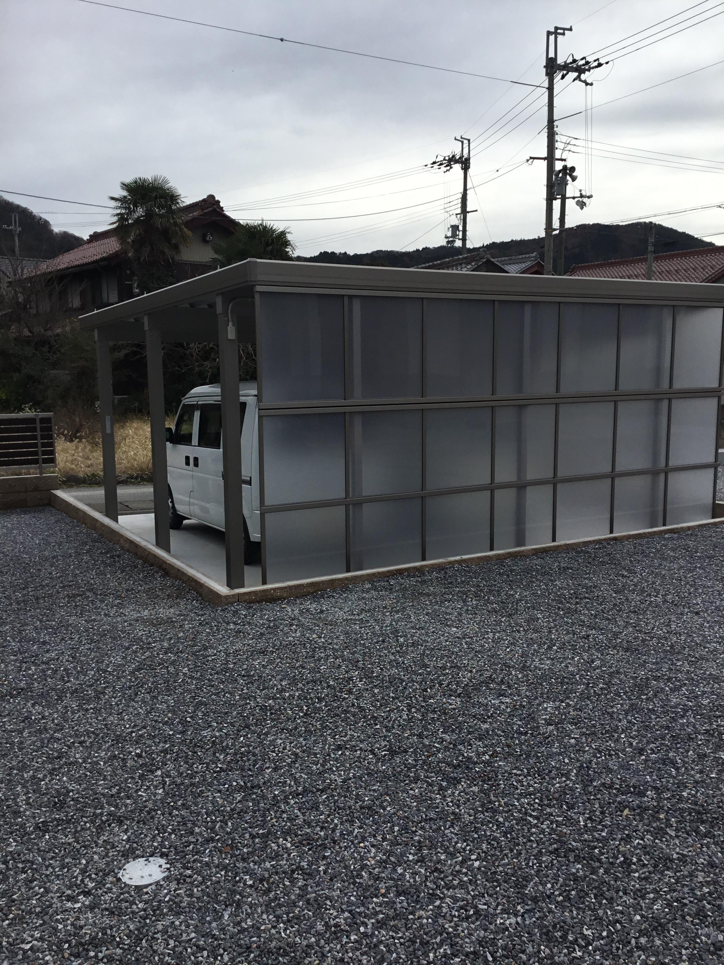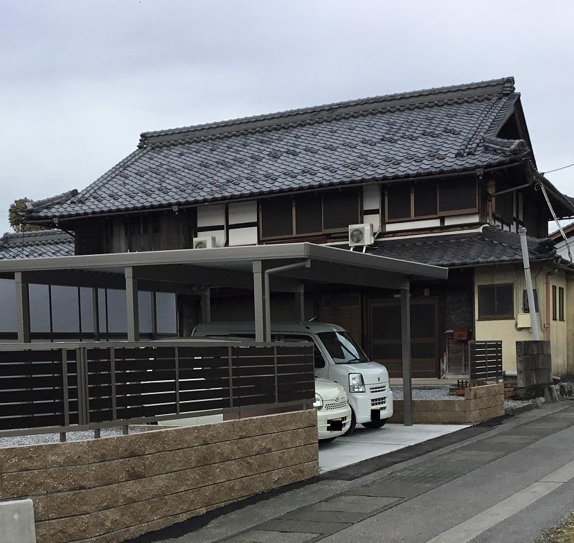 これまで、敷地の周りは植栽と石ブロック塀で囲まれていましたが、大幅に撤去しました。道路から車の駐車ができるよう、2台用のカーポートを新たに設置しました。
