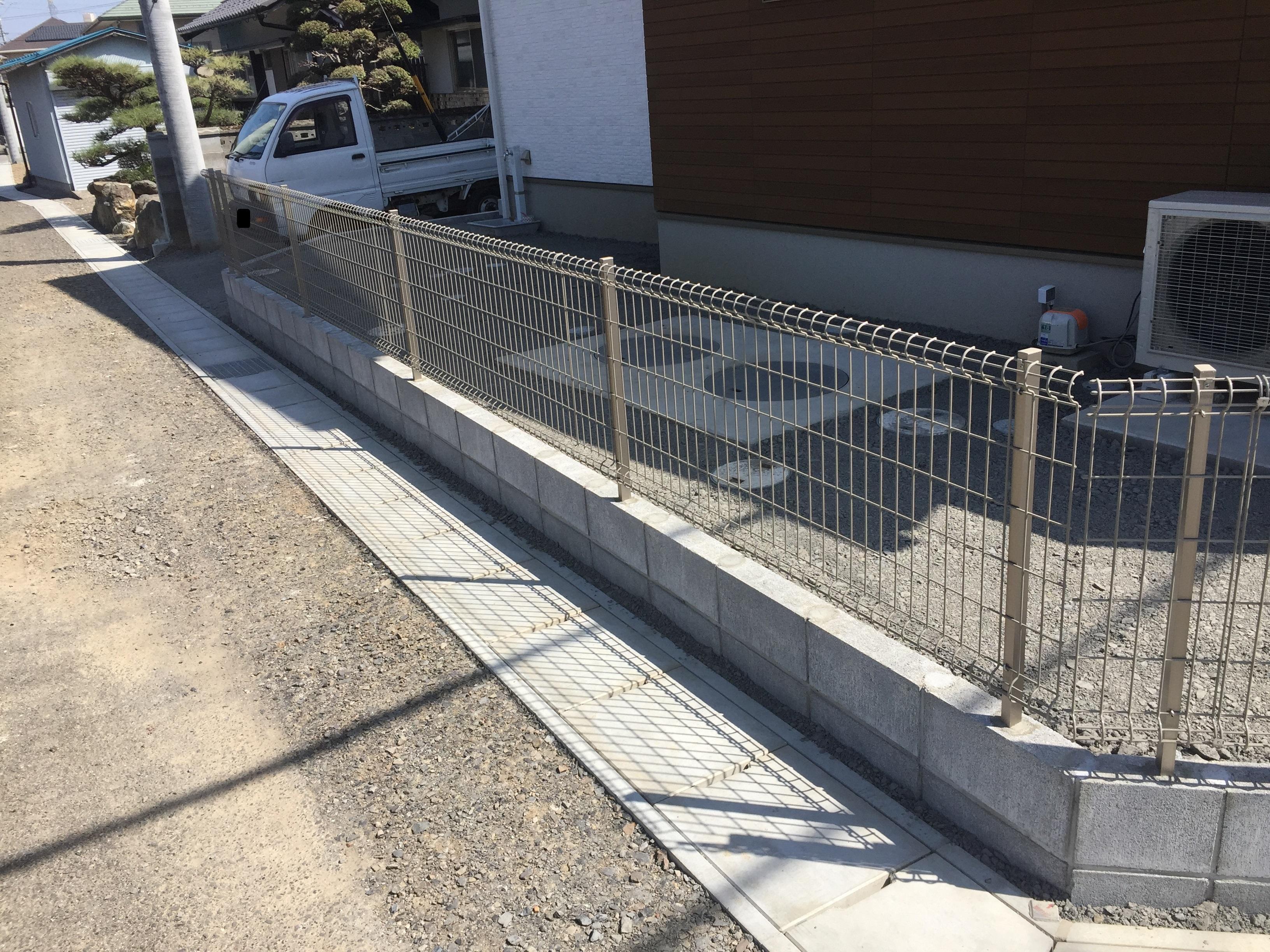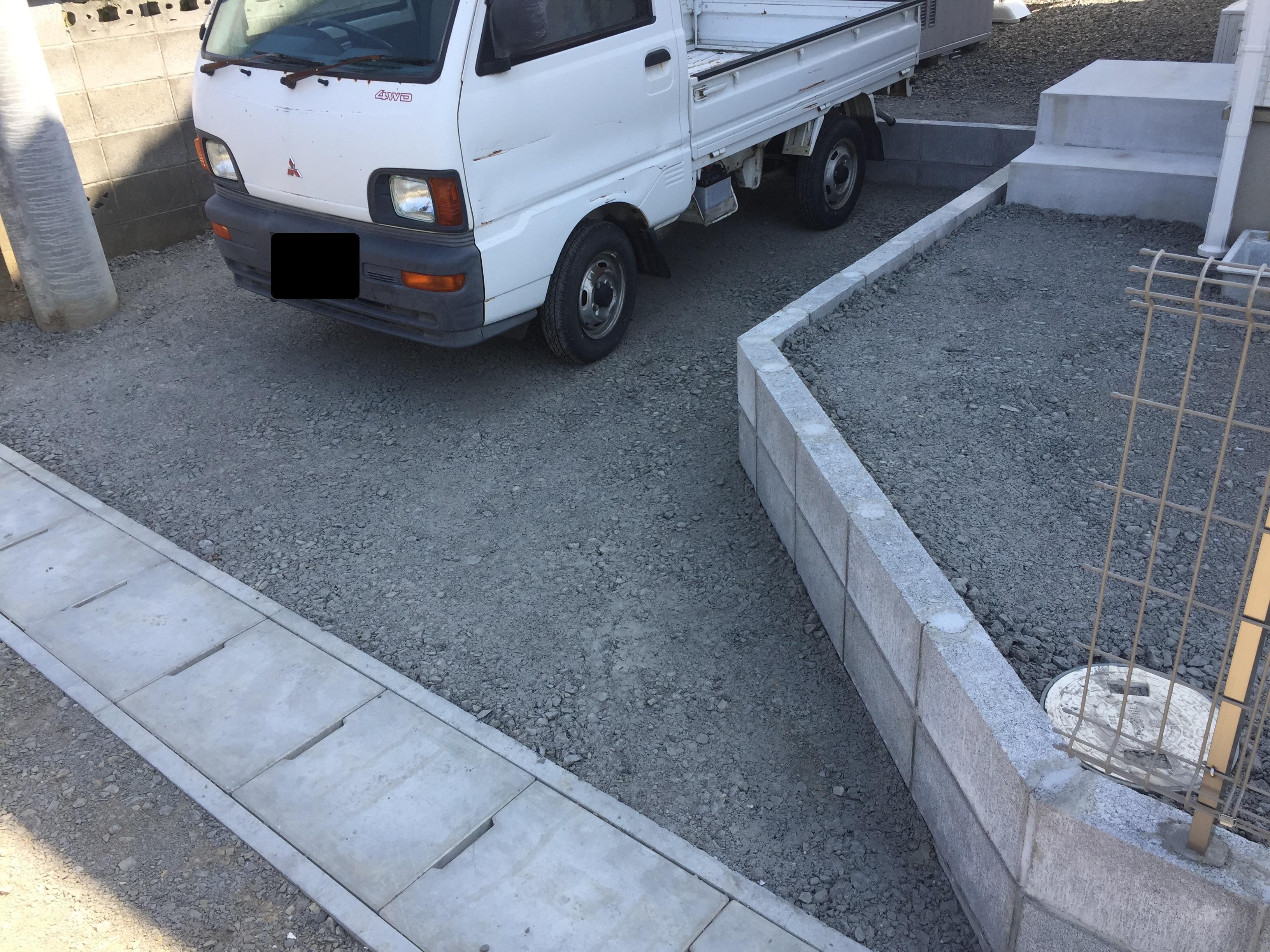 家と道路との境界に、新たにフェンスを設置しました。勝手口に繋がる位置には、一台分の車の駐車スペースを設けました。