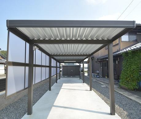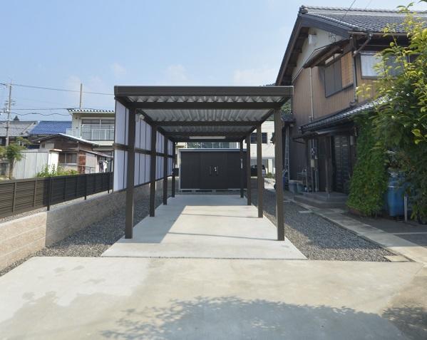 使用していない建物とブロック塀を解体し、更地にした後、カーポート、物置、フェンスを設置しました。