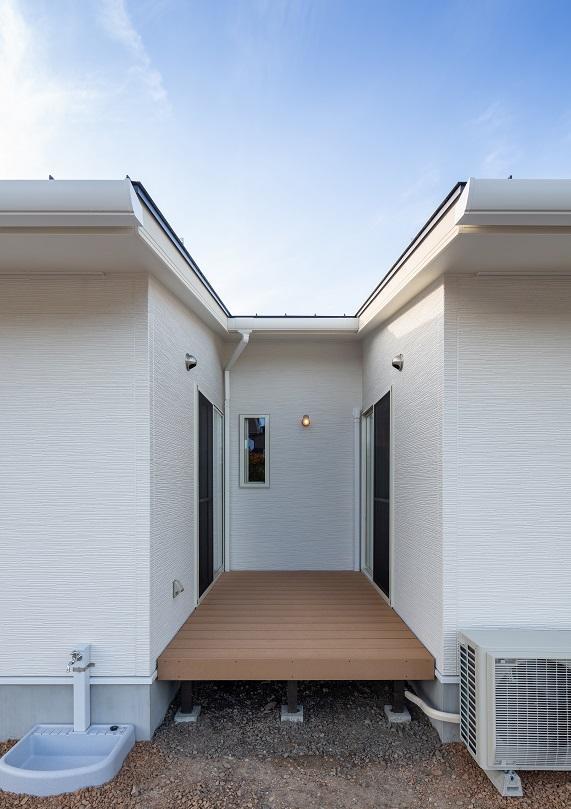 リビングからも寝室からもアクセスできるウッドデッキは、クッションやお布団を天日干ししたい時に、便利です。