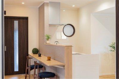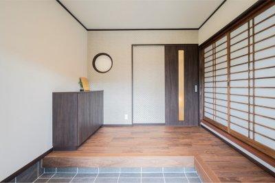 また、既存の和室に面した玄関は、丸窓やダークブラウンを基調とした内装を施し古民家風で統一しました。