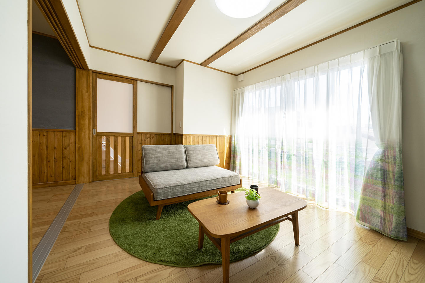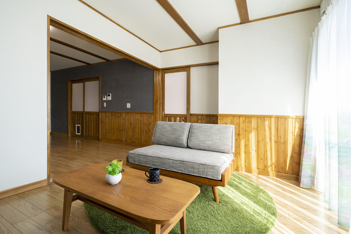 親・子・孫の三世代が快適に過ごせる空間を目指し、建具や壁に自然素材の塗装を施すことで、自然のぬくもりを感じるLDKに仕上げました。