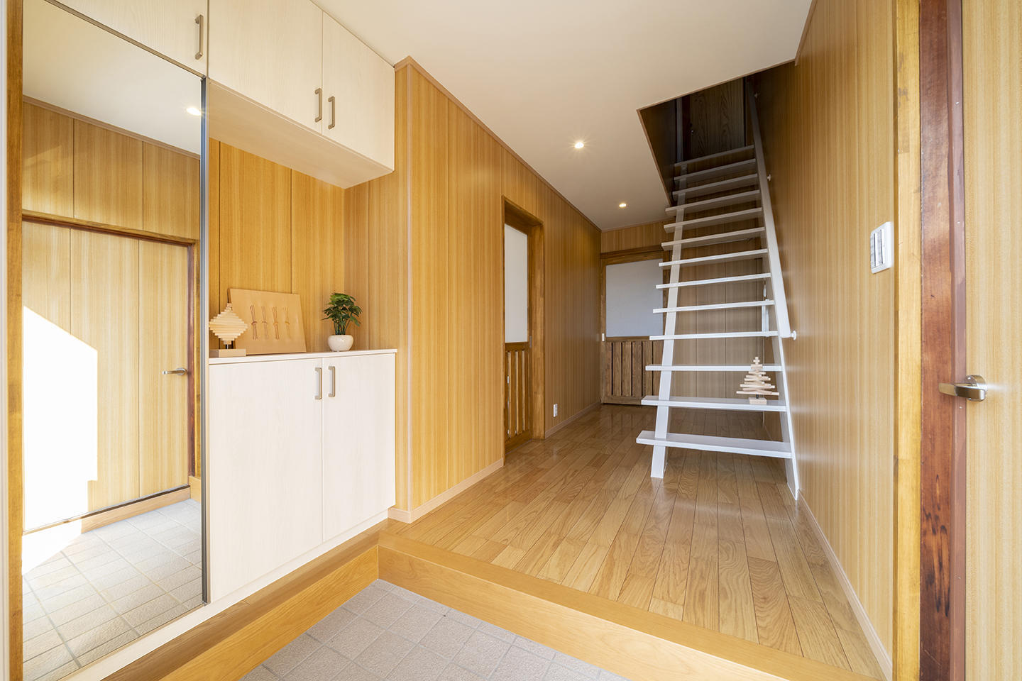 内装は珪藻土に近い塗料を使用し、お施主様みずから施工されました。調湿効果があるため、梅雨の時期には湿気を吸収し、冬の乾燥時には湿気を放出し、常に快適な空気を保つことができます。