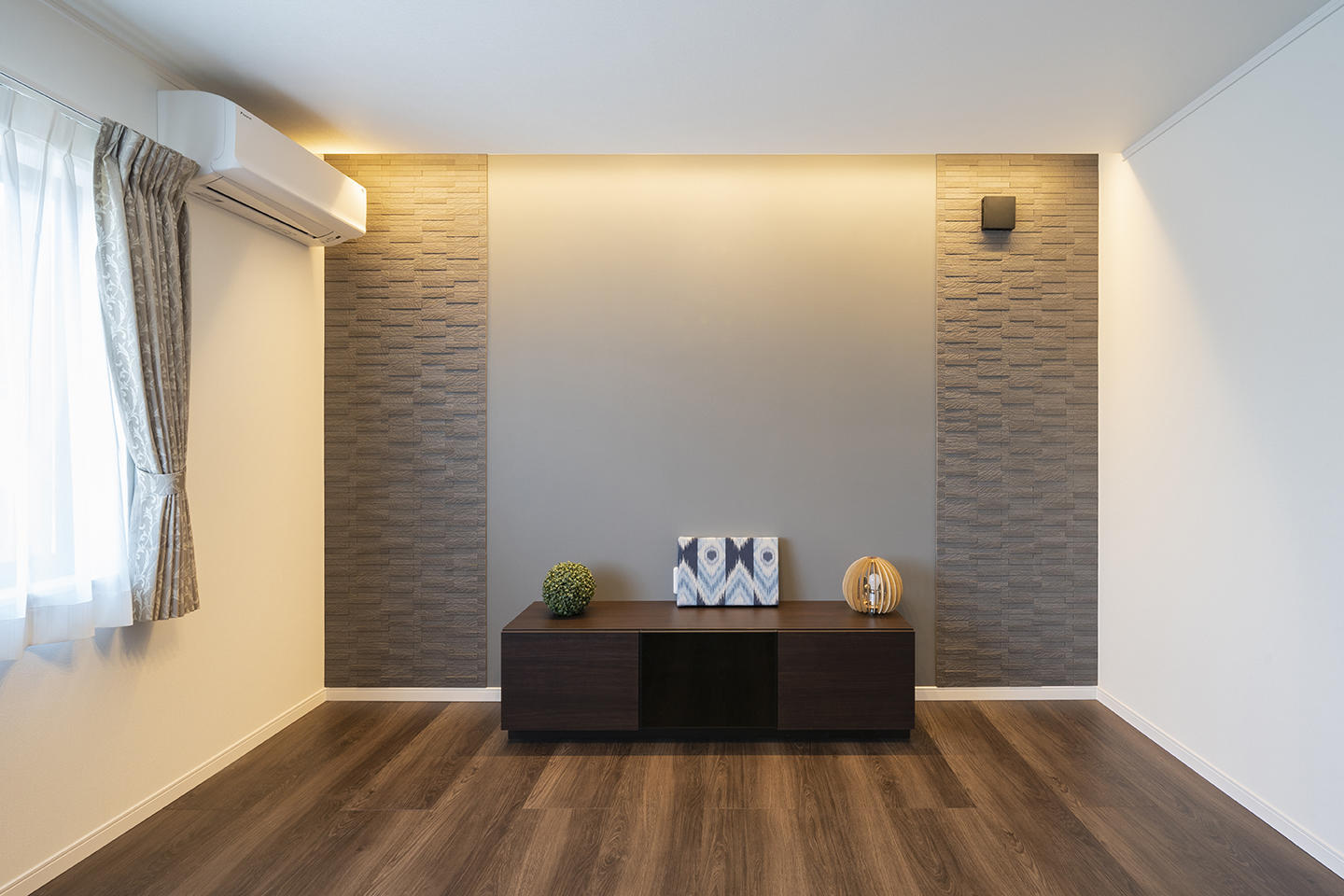 ひとつ屋根の下でも適度な距離を保ちつつ、プライベートな時間を楽しむことができるよう、親御さんは1階に寝室、若いご家族には2階に寝室と第二のリビングをご用意。皆様が集まる1階は、明るく温かみを感じるナチュラルな内装に。2階は若夫婦のお好みに沿った、ダークカラーの落ち着いた内装にしました。
