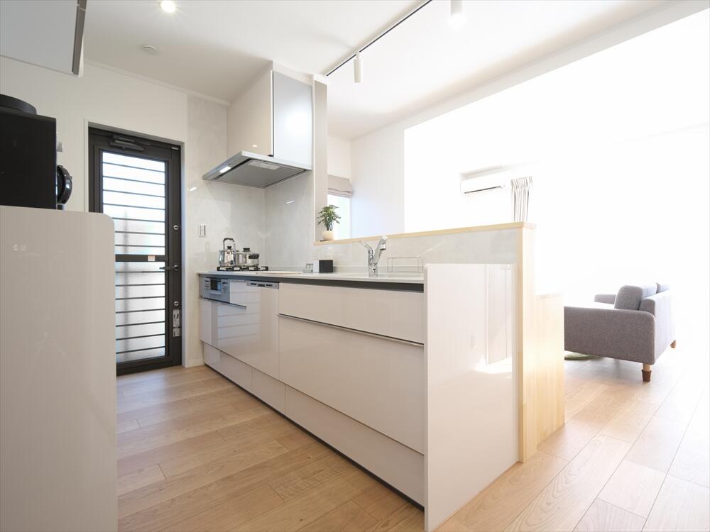 高断熱パネルを使用したことで、エアコン一台で年中快適に過ごすことのできるお家になりました。 ダイニングキッチンとリビングが分かれていた間取りを一つの空間に変更。キッチンを対面化することで、家族との会話が楽しめる団らんのLDKになりました。