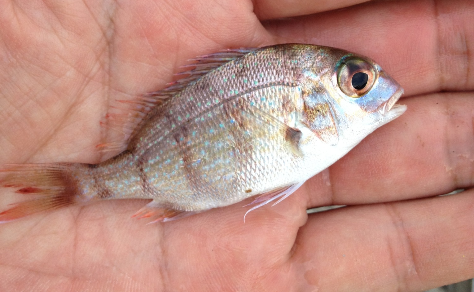 先日、子供とサビキでアジを釣ってたんですが、タイが釣れました!