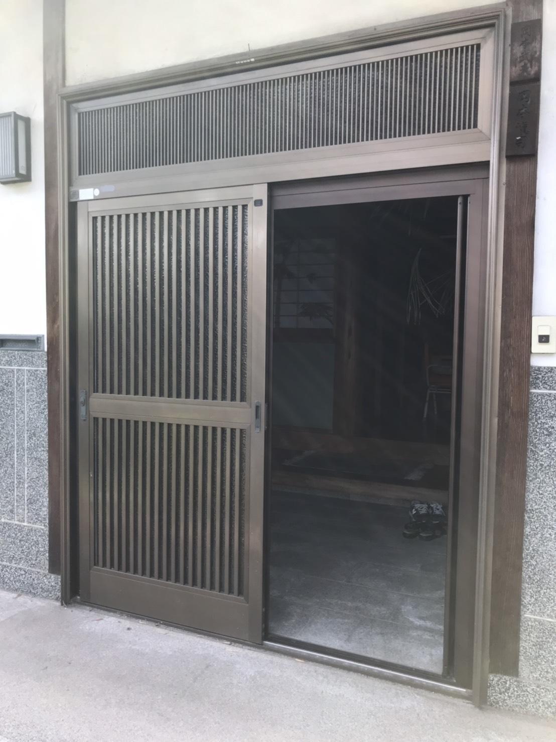 新築以来、ずっと長年使用してきた玄関でしたが、年数と共に古くなり、カギのかかりが悪く防犯面で心配されていました。また、現在住まわれている方が、おばあちゃんお1人ということもあり防犯上息子さんも心配されており、今回ご相談をいただきました。