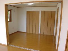 寝室と洋間を仕切る3枚引きの引戸を開けると開放感のある広い洋間へと早代わり。各部屋収納を設け、スッキリとした空間です。