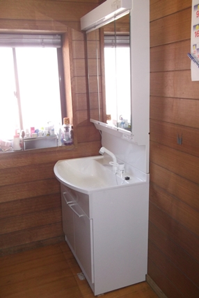 古くなった洗面化粧台を新しくしました。コンパクトで脱衣スペースも広がりました。