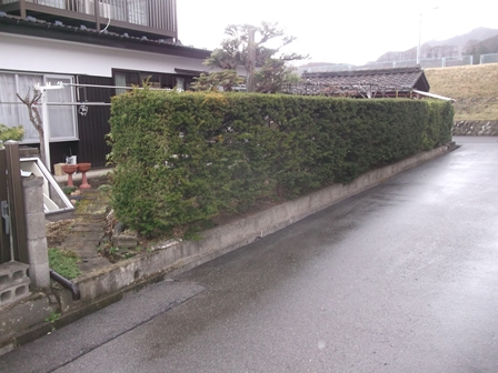 長い間家を見守ってきてくれた垣根。お施主様も年を重ね毎年の手入れも大変となり、先々も考えられてフェンスの設置を決められました。