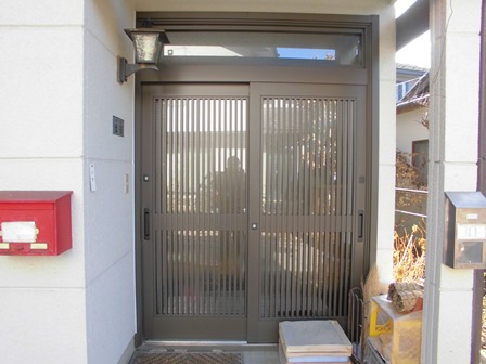 北側にある玄関です。冬は凍結で開閉が出来ないときもありましたが、断熱引戸と断熱内窓を設置し断熱性も上がり、開閉もスムーズなりました。。