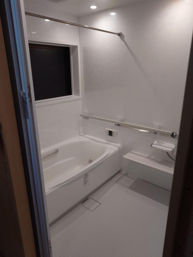 経年劣化による傷や浴槽の大きさが気になっていたお施主様。 保温機能が高く、床がヒヤッとしないリデアをご提案しました。 手摺や物干しも取り付け、使い勝手の良い明るくゆったりとした浴室に生まれ変わりました。 白を基調とした心地よい爽やかな浴室で、ゆったりバスライフを過ごせますように♬