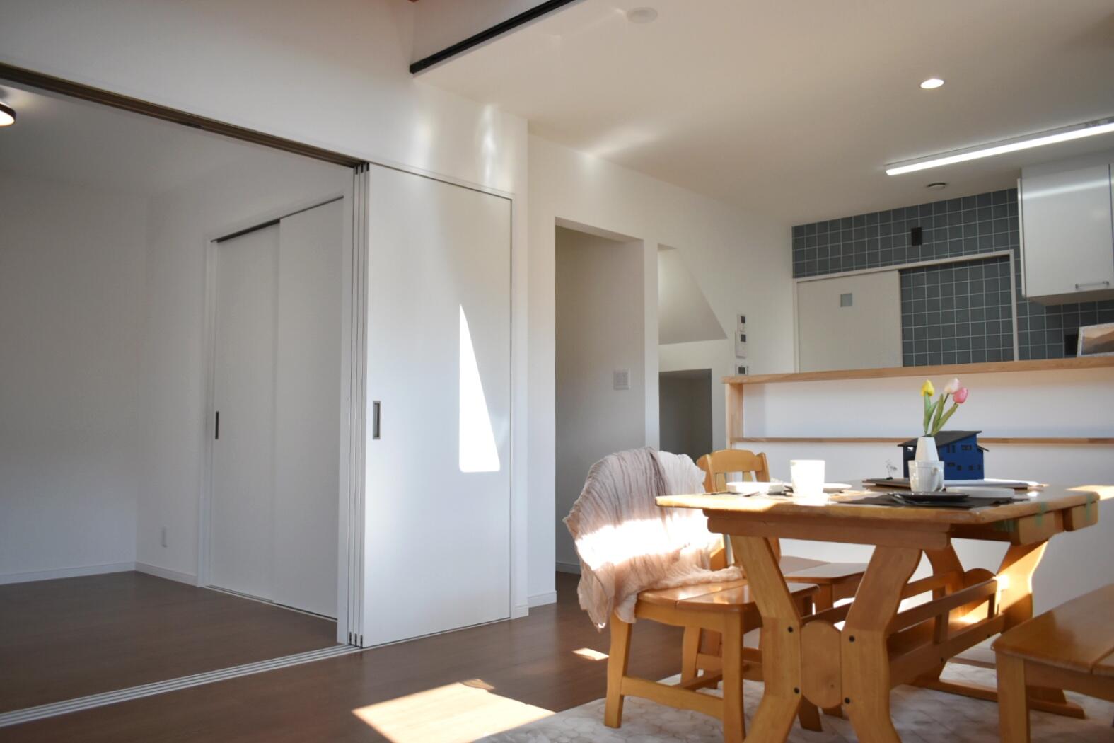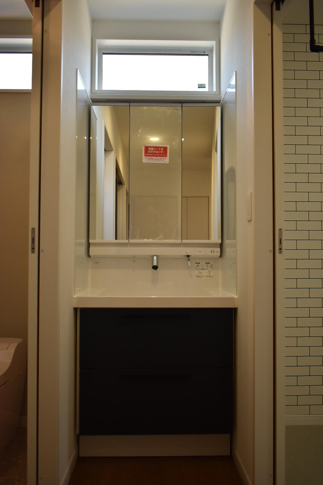 ネイビーをアクセントに、白と木目を基調としたインテリアにもこだわったお住まいになっています。