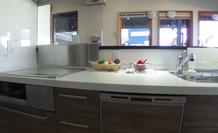 キッチン現品展示中!LIXIL リシェル 白い人造大理石のトップに大収納のキャビネット、食洗器もついて家事もラクラク!オプションで背面収納もご用意できます。佐久穂のリフォームは大栄建設にお任せください!<<<ただいま国交省のお得な補助金 こどもみらい住宅支援実施中!浴室リフォームなら約10万円の補助金がもらえるチャンスです!!>>>