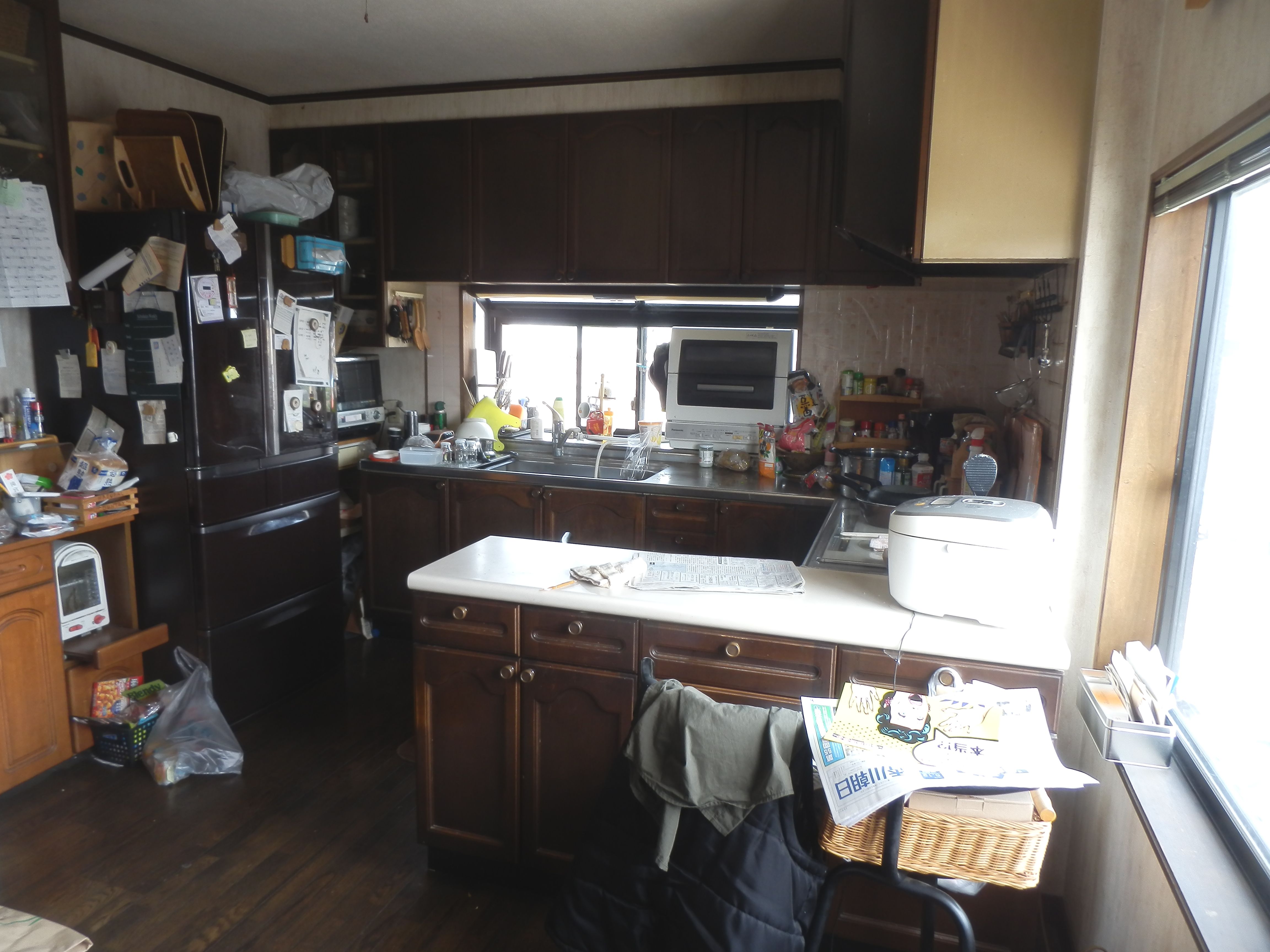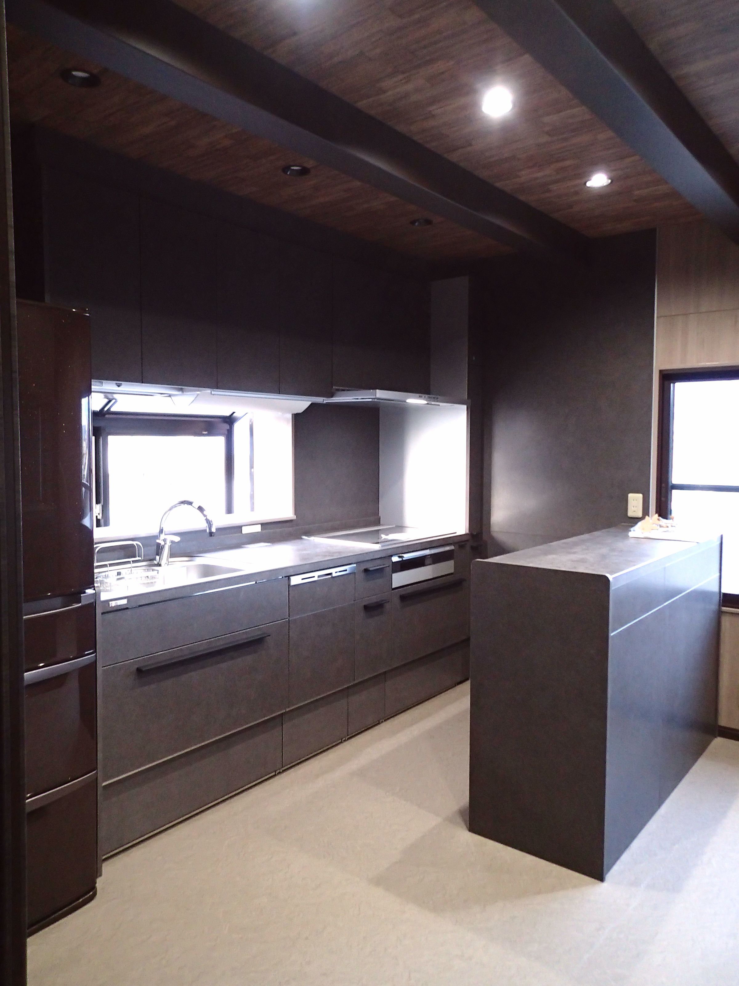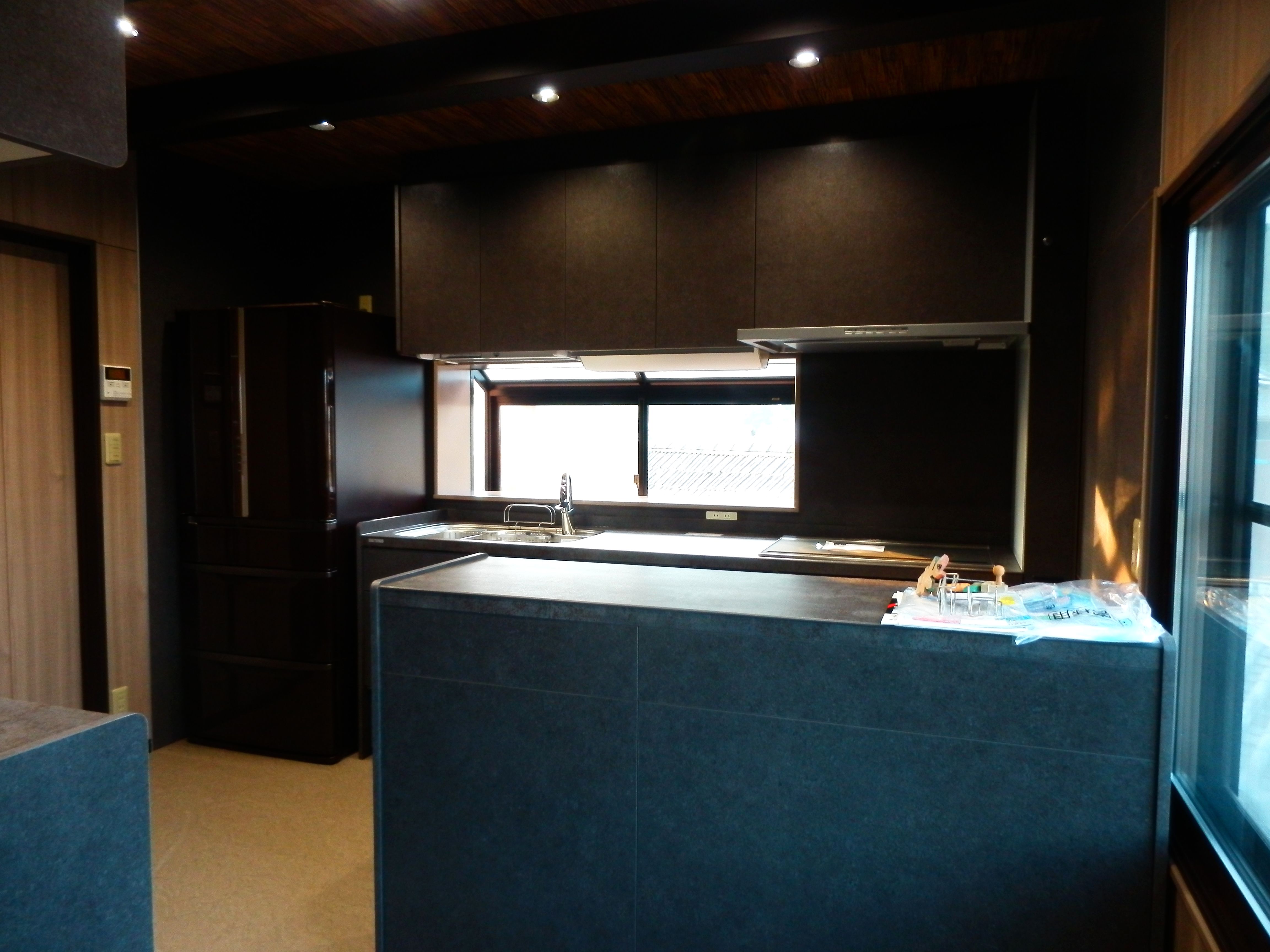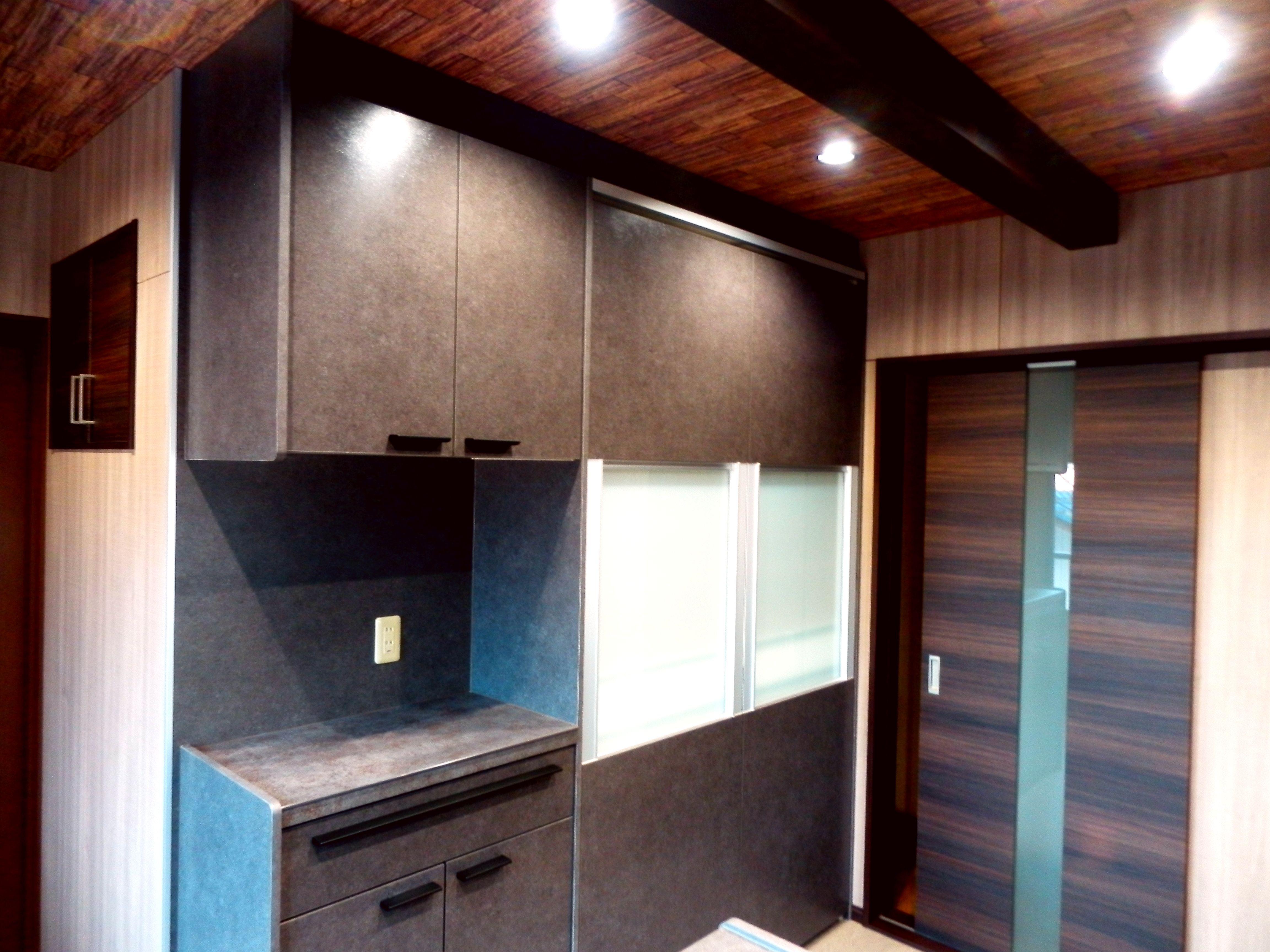 冷蔵庫収納スペースを作り、キッチンをひろ~く、 ついでに天井壁も!!