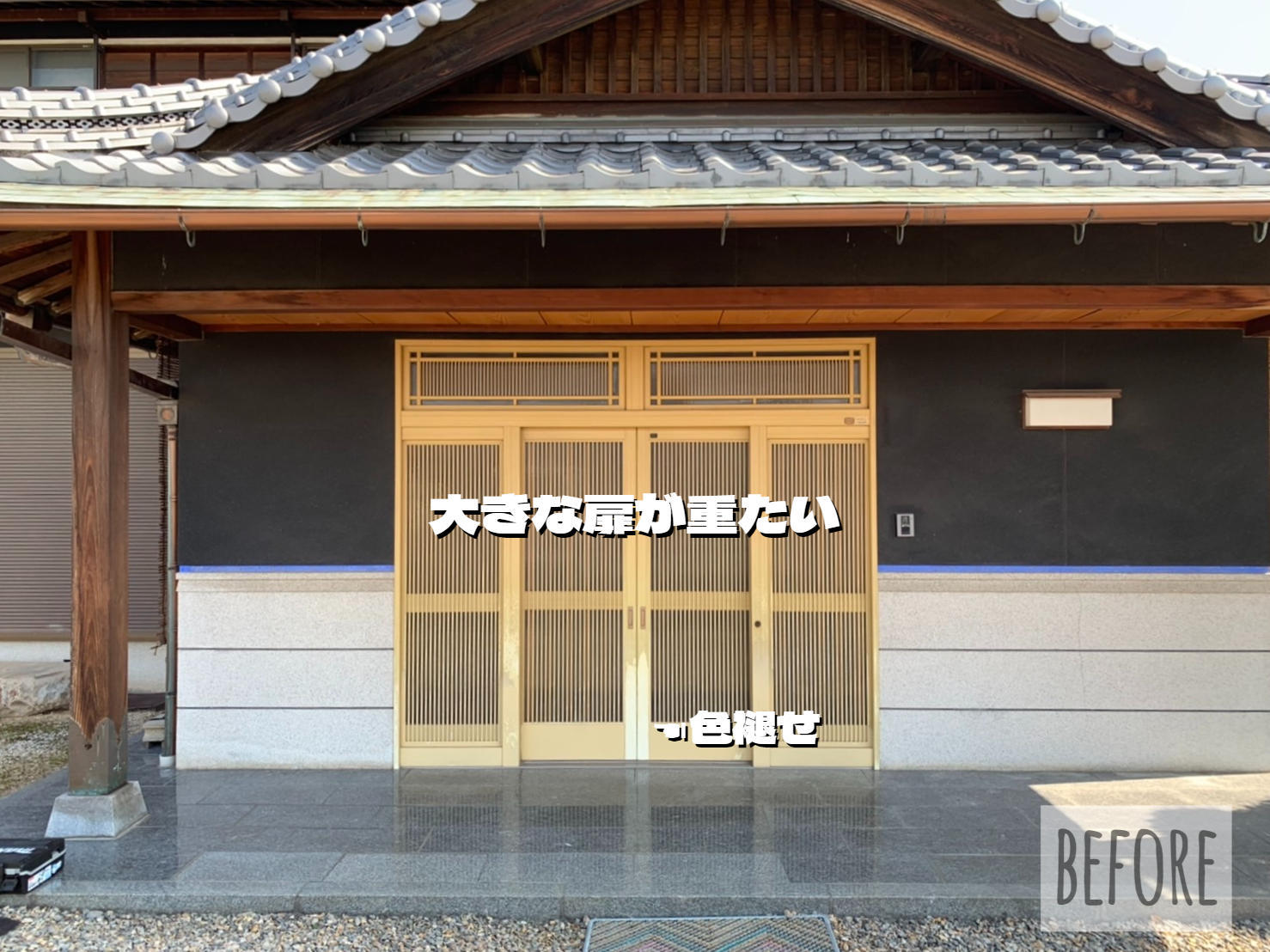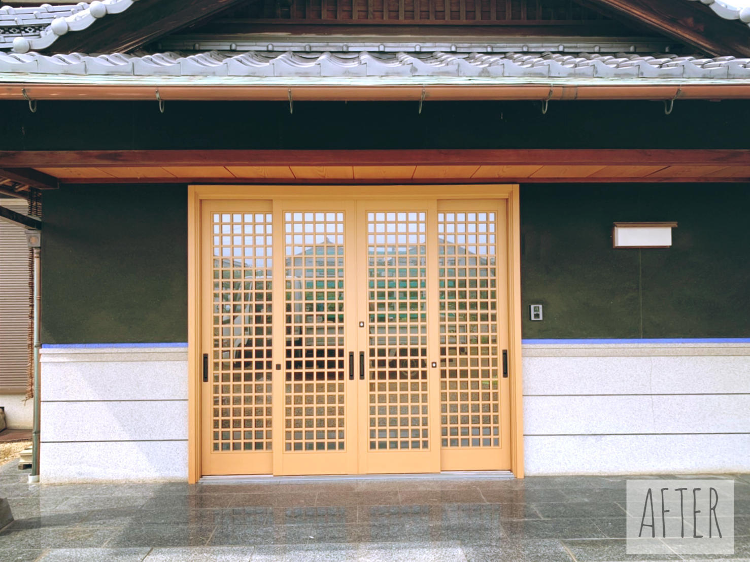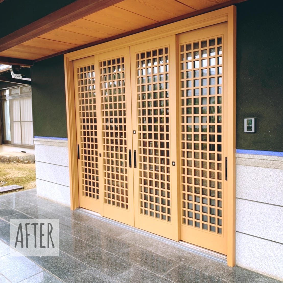 古くなってきたことと防犯面で心配があったため、玄関ドアをお取替えしました。 2ロックタイプ、そして特殊な鍵になりましたので、安心してお過ごしいただけます。 古い引戸は、重かった為新しい引戸の開閉がスムーズになり、大変喜ばれました。