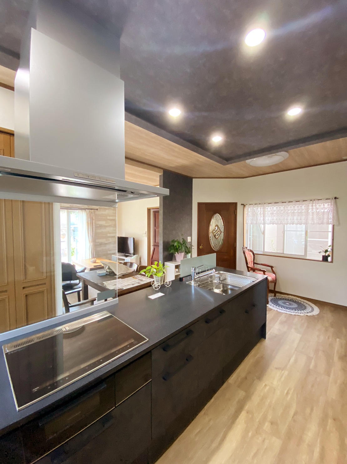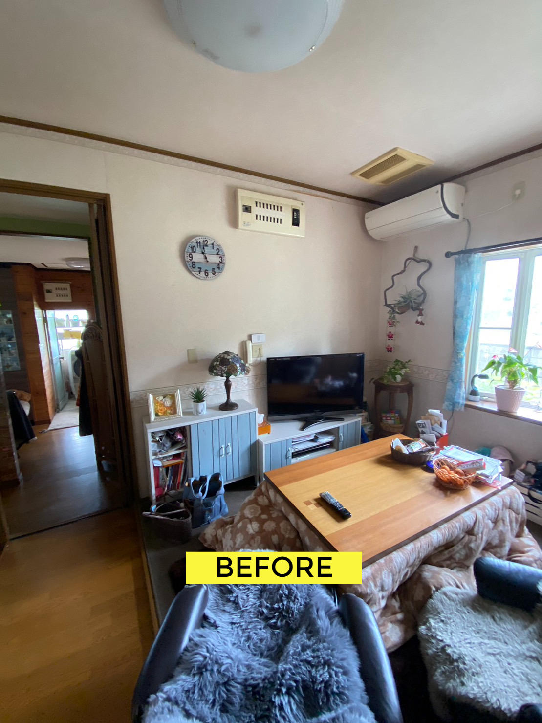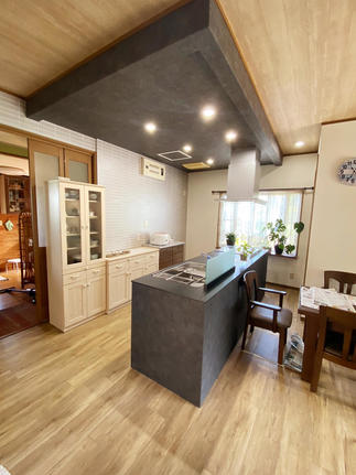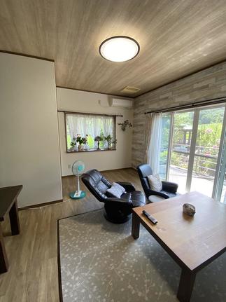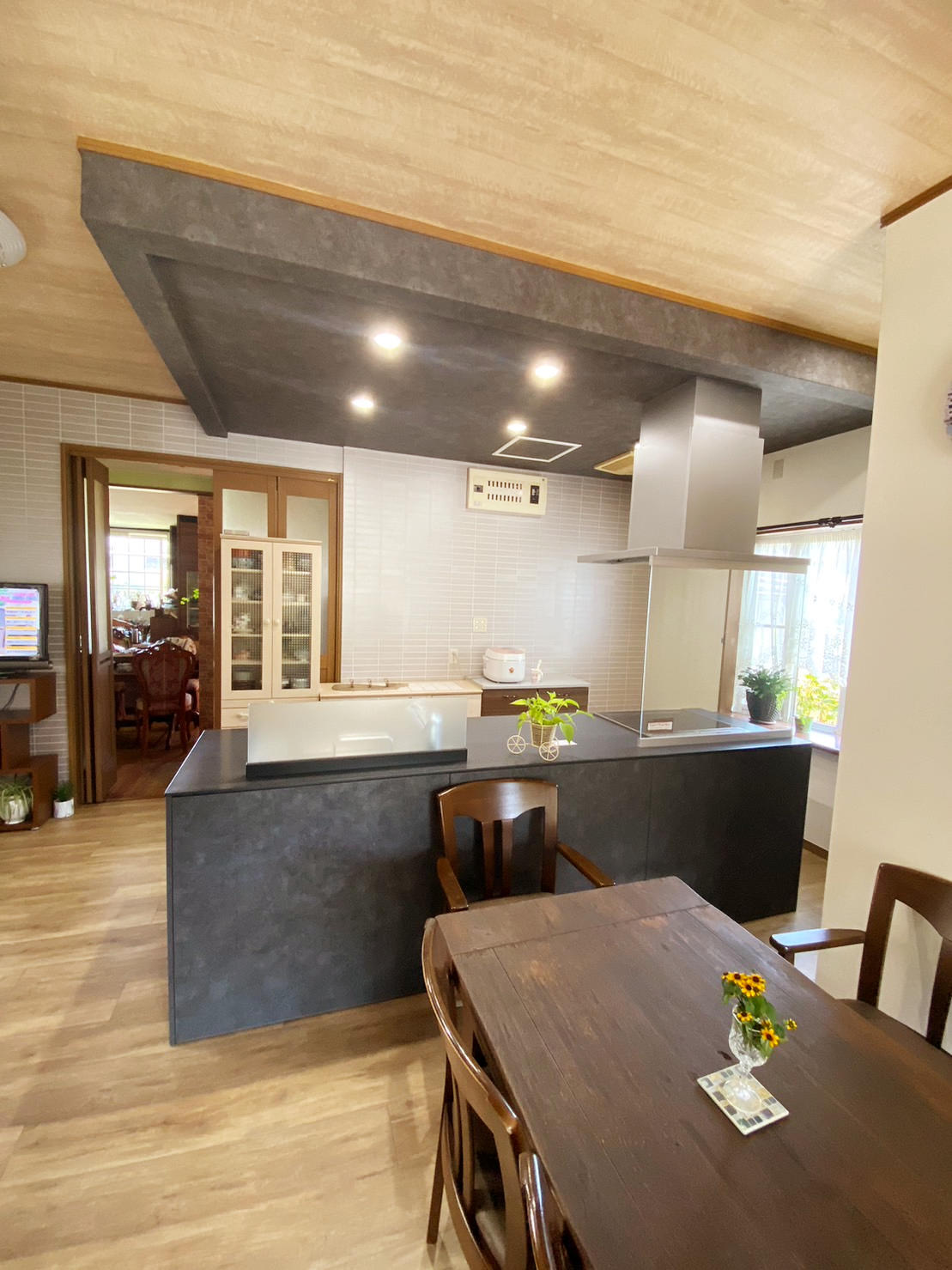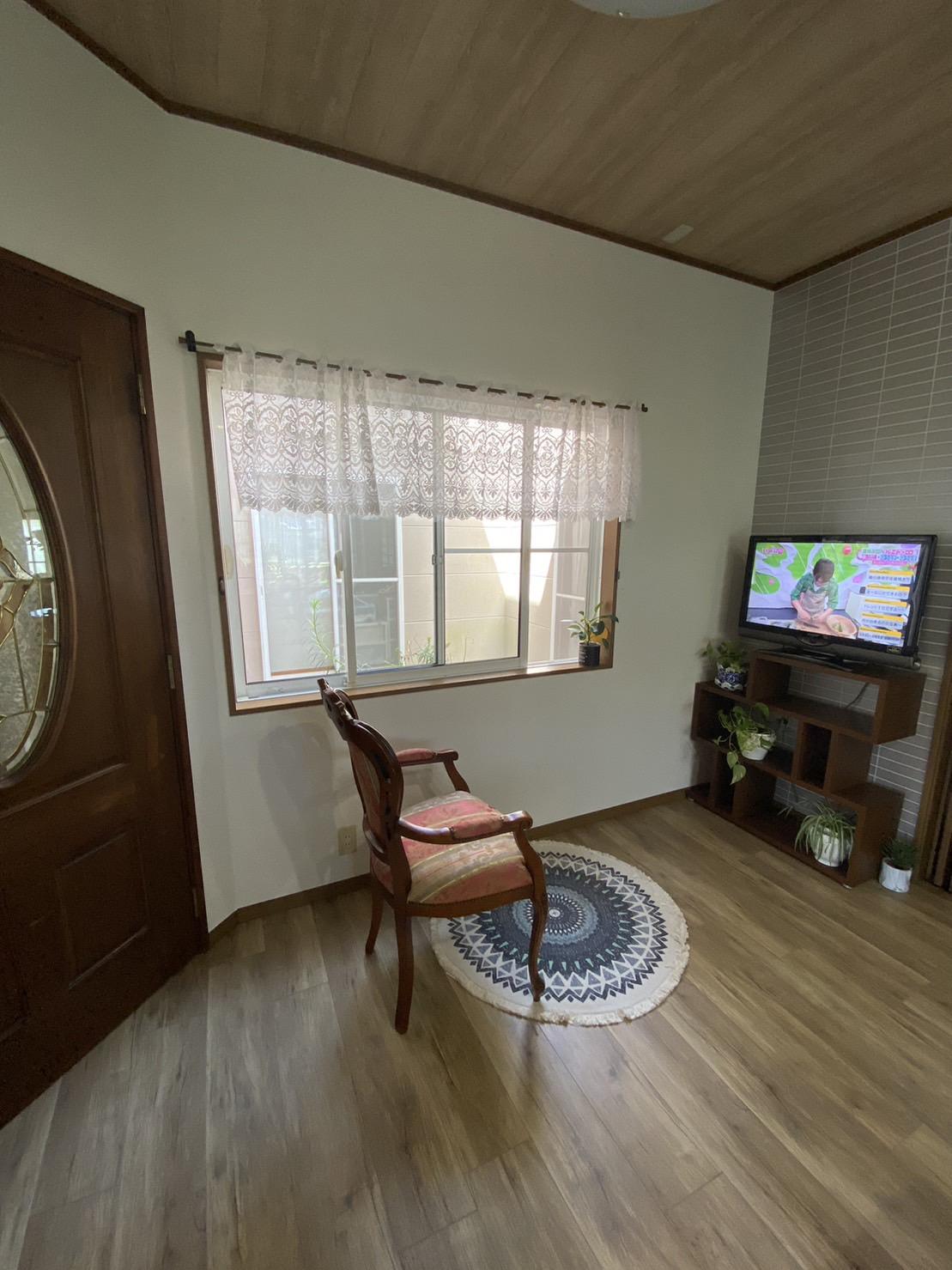 今まで使っていたリビングは、暗くて狭いとのご要望に使わなくなった隣の南部屋の壁取り払って一つの部屋にしました。南の開口から光が部屋全体に入り込んでとても明るく開放的なリビングになりました。