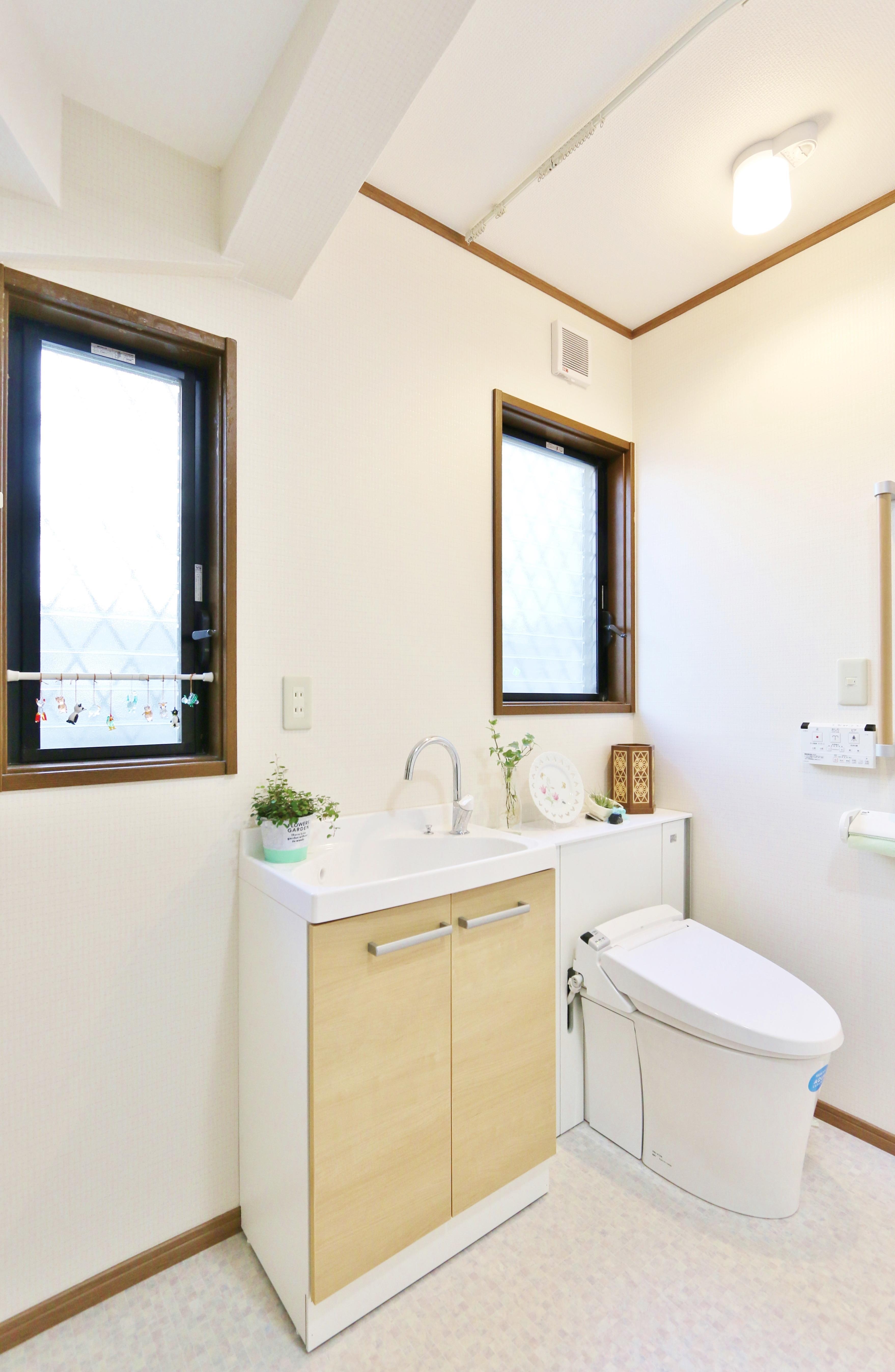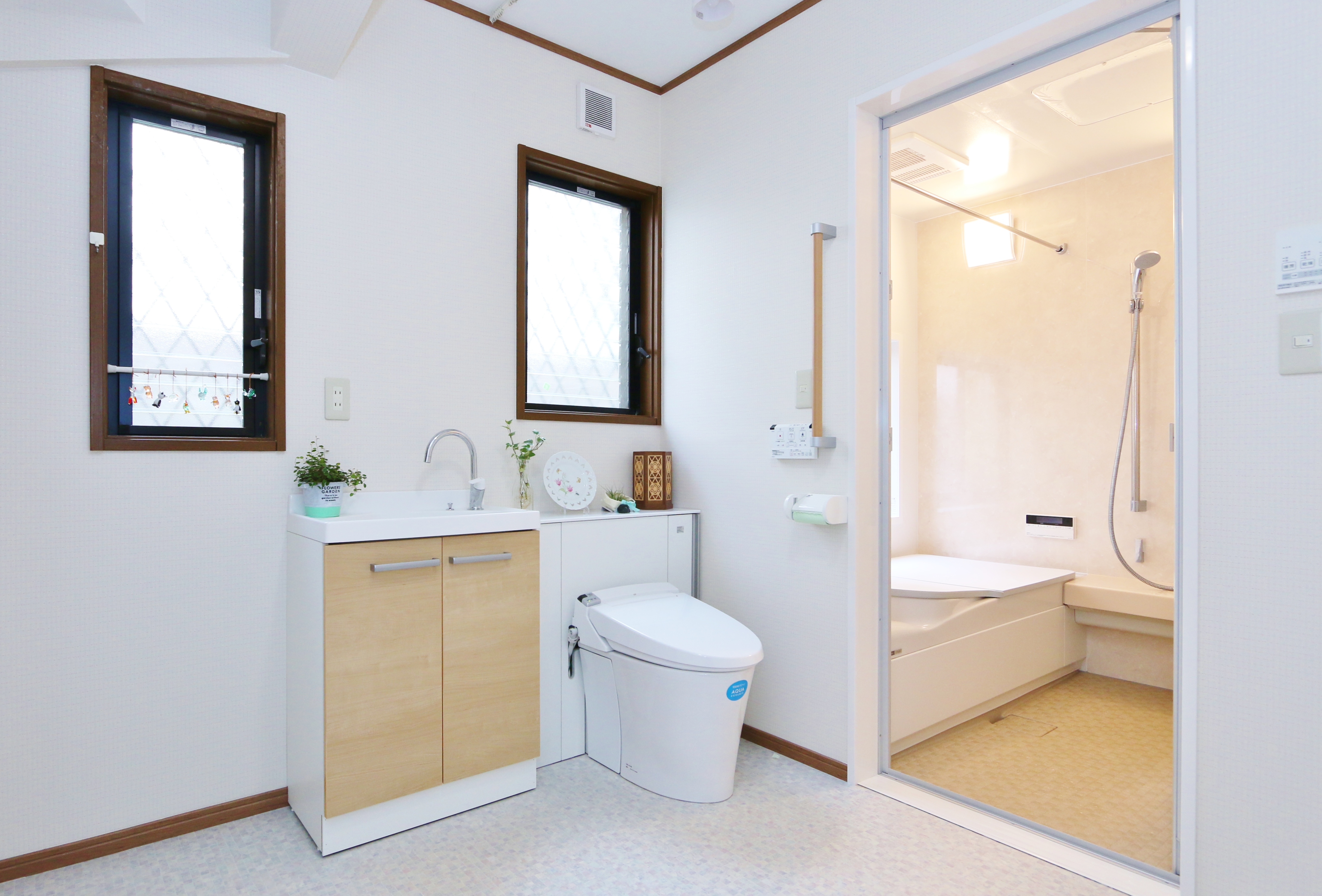 洗面室とトイレの壁を取り払い、一つの空間として広々と使えるようにリフォームしました。
