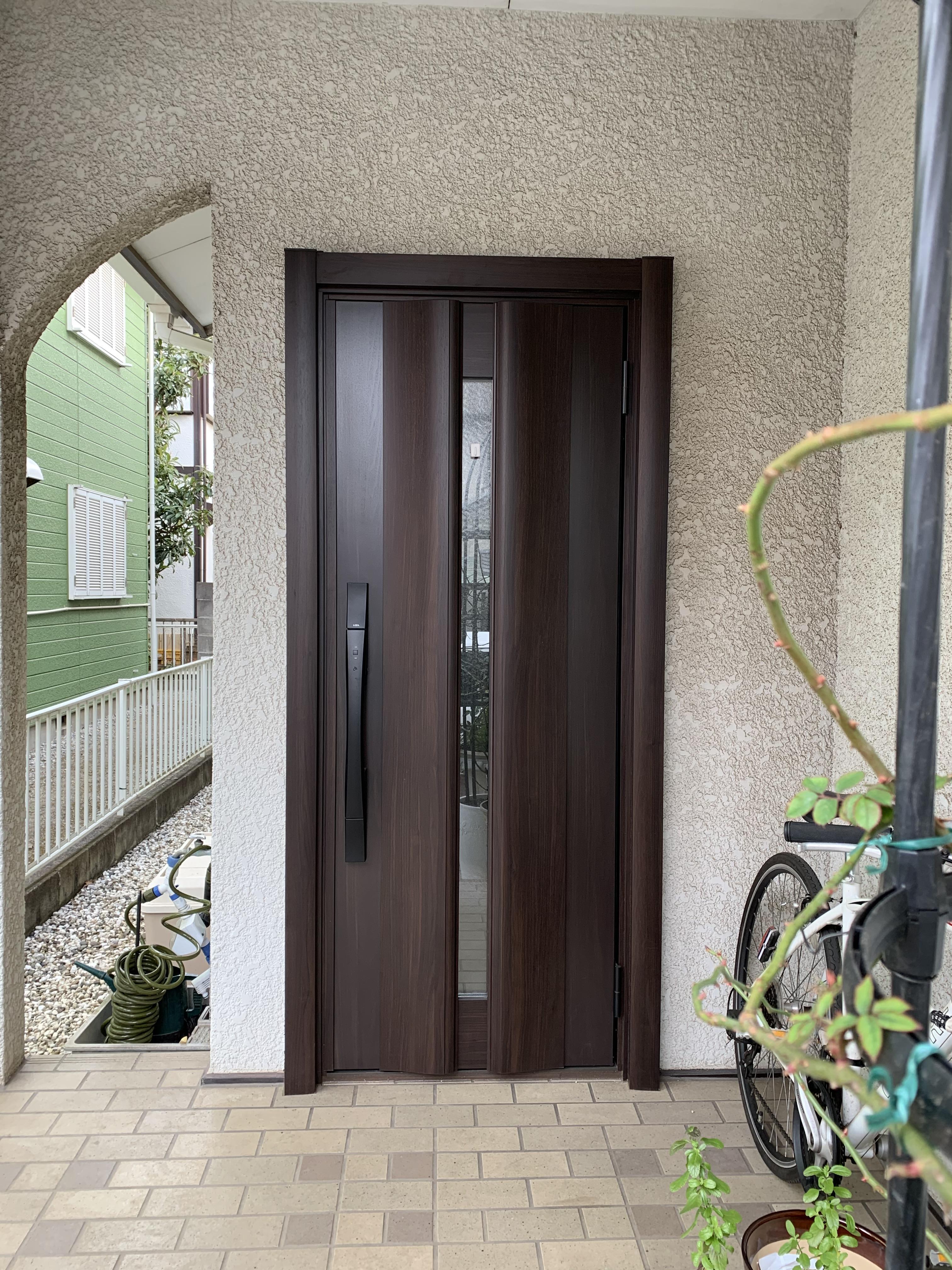 玄関ドアをリフォームいたしました。 LIXILのリシェントなら「カバー工法」のため、壁を壊さず1日でリフォームが可能です。