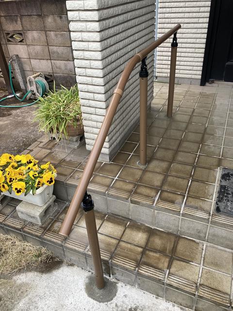 玄関アプローチの手摺新規設置工事をいたしました。 安全対策の為、玄関アプローチに手摺を設置される方が増えています。 LIXIL「UD手すり」