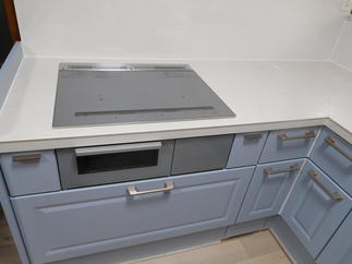 LIXILキッチン「リシェル」にリフォームいたしました。 上質な質感のキッチンパネルやセラミック製のワークトップ。 タッチレス水栓やIH調理器、オートダウン機能付き水切りかご収納を導入され、機能的なキッチンになりました。