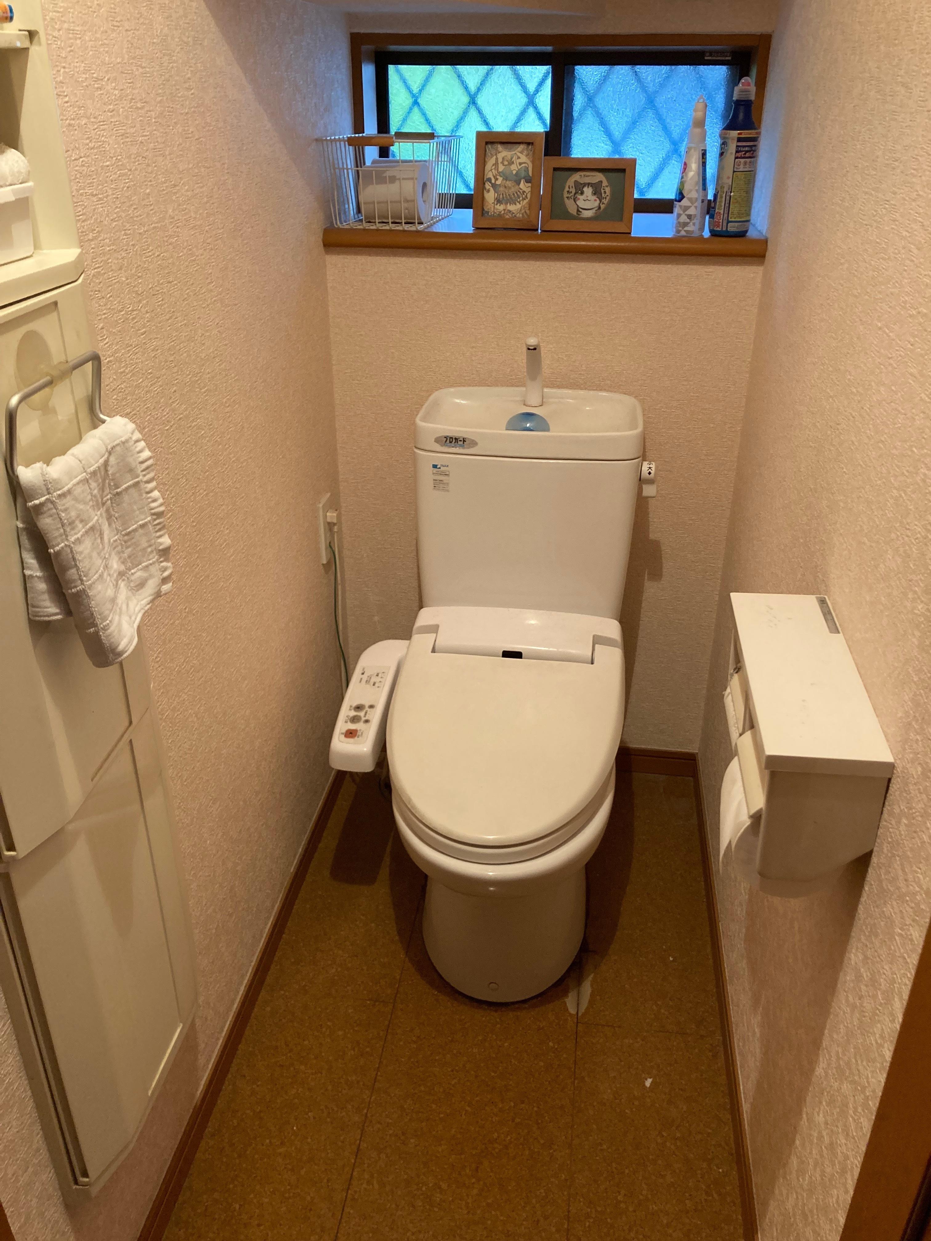 1階と2階のトイレ、2か所のリフォームをいたしました。 LIXIL「アメ-ジュシャワートイレ」は大きめの手洗い鉢や便座のリフトアップ機能、 ふちレス形状の為お掃除が楽です。