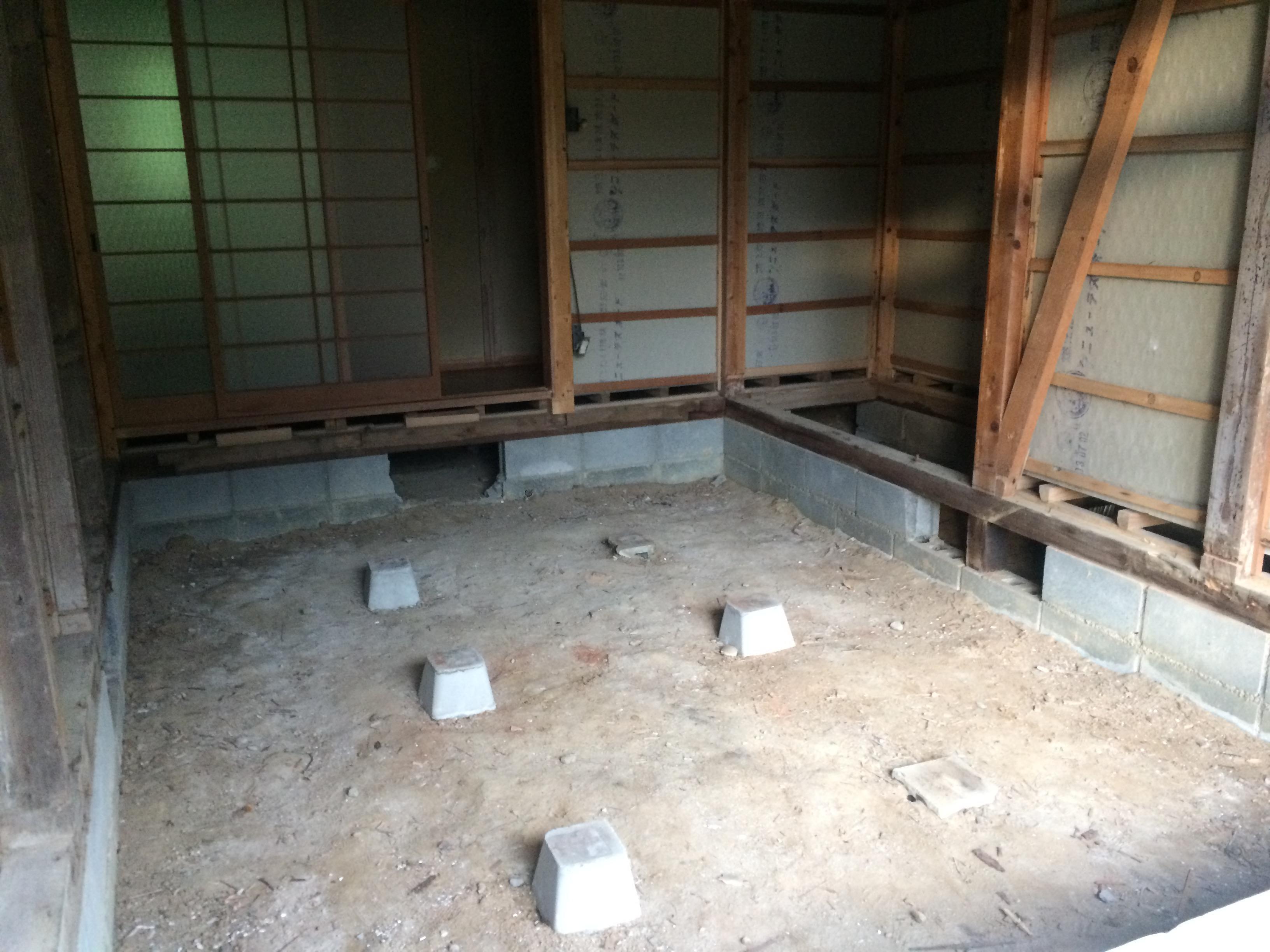 湿気がひどいので、これから全体に炭八を敷き詰めていきます。